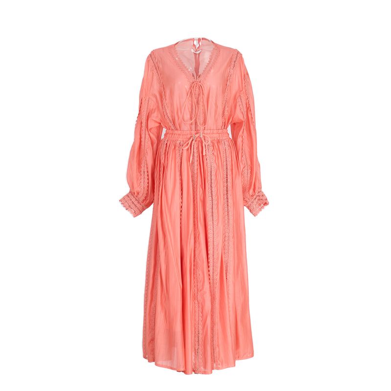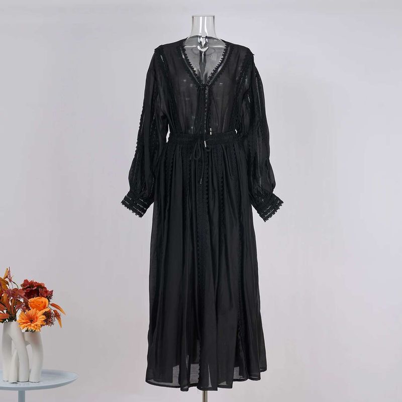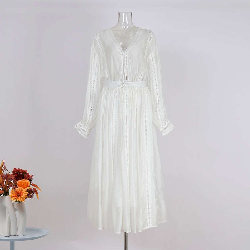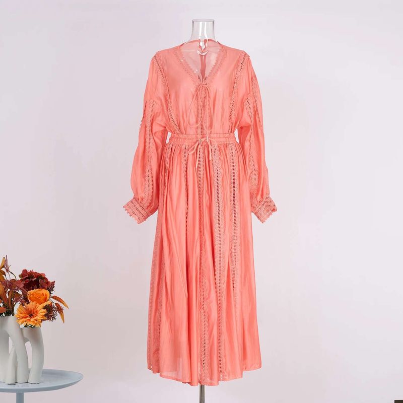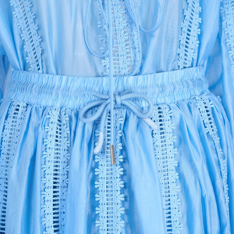 Elegant Hollow Out Maxi Dress 2 Piece Sets Women Big Size Lantern Sleeve Embroidery Shirts + Long Skirts Suits Luxury Outfits