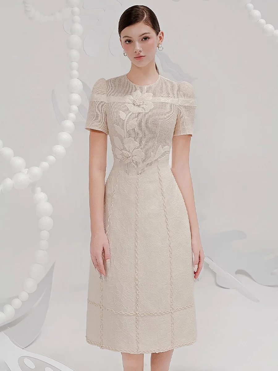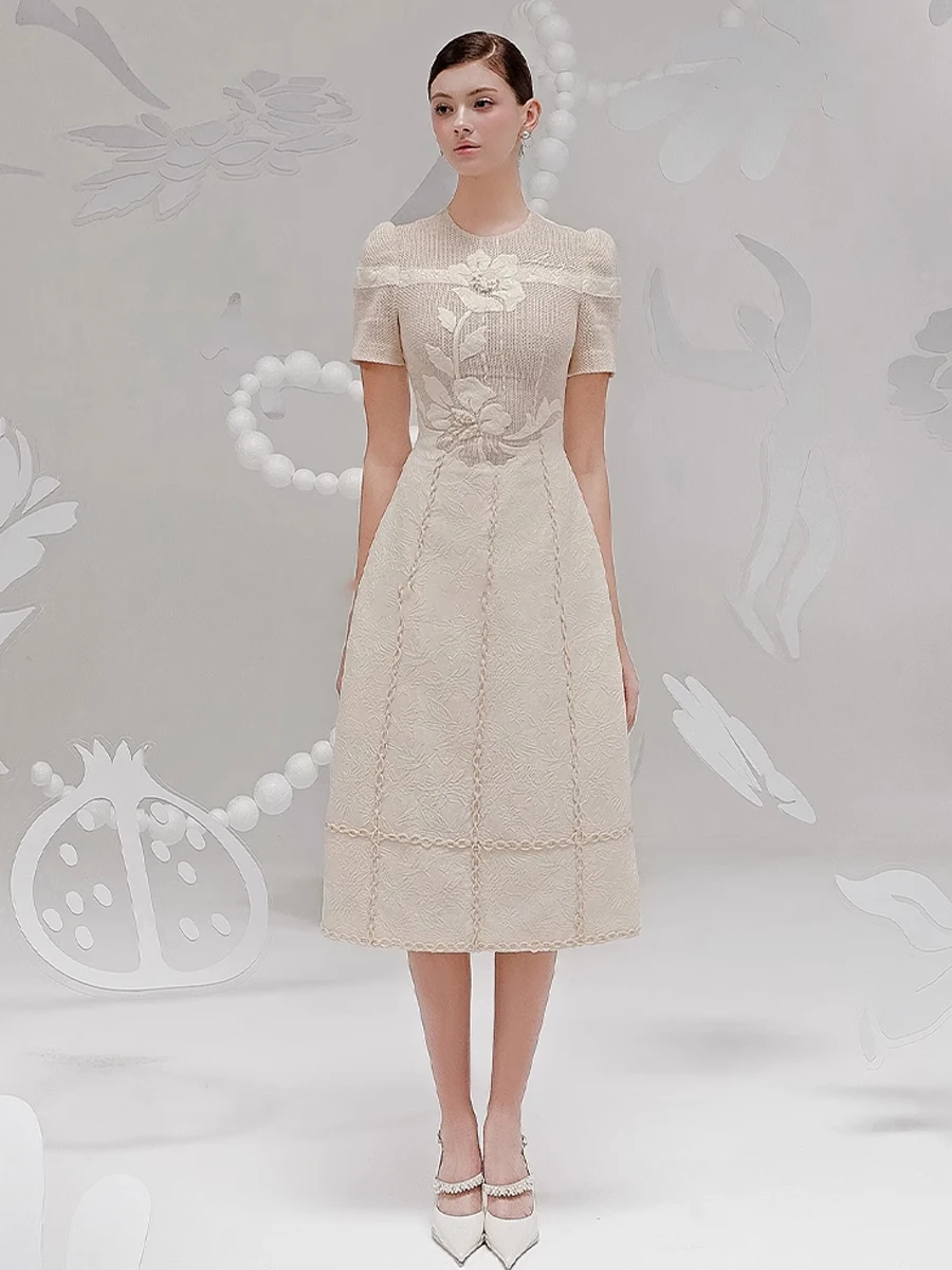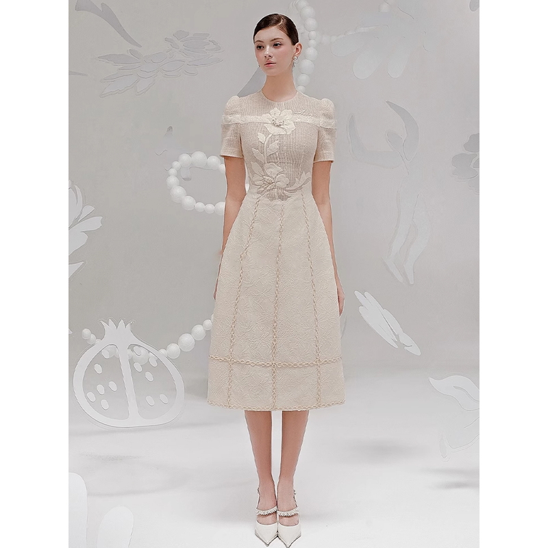 The A-line skirt of the dress provides a gentle and graceful movement, perfect for both formal events and everyday wear.
