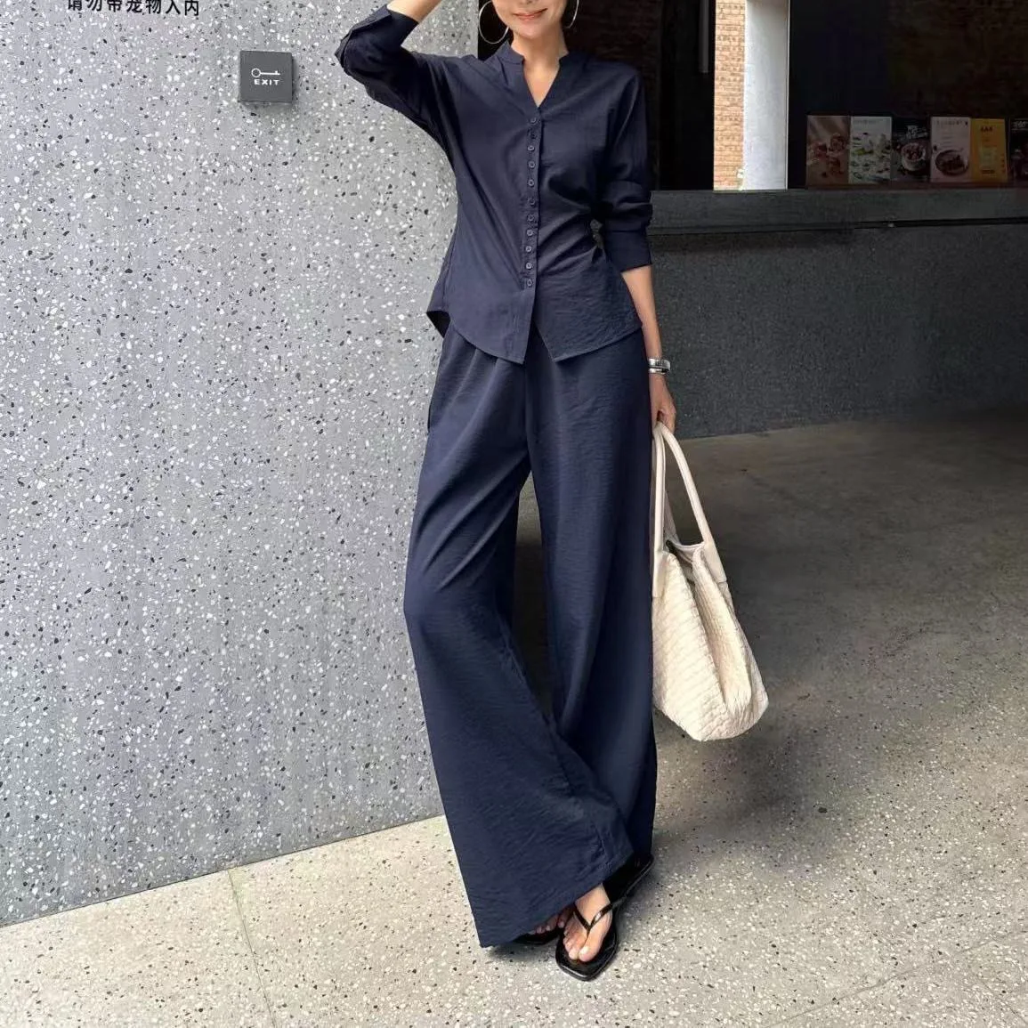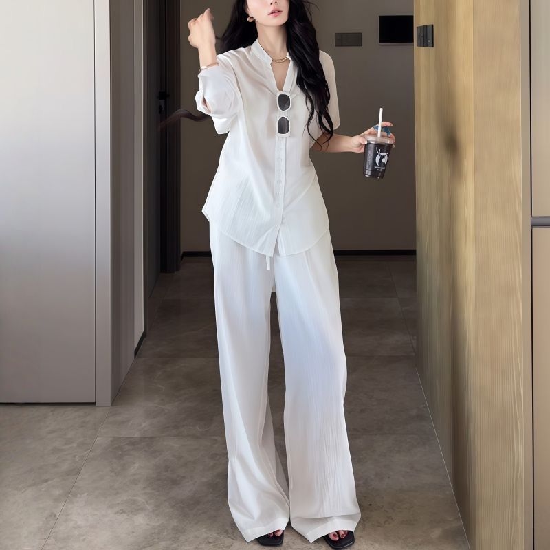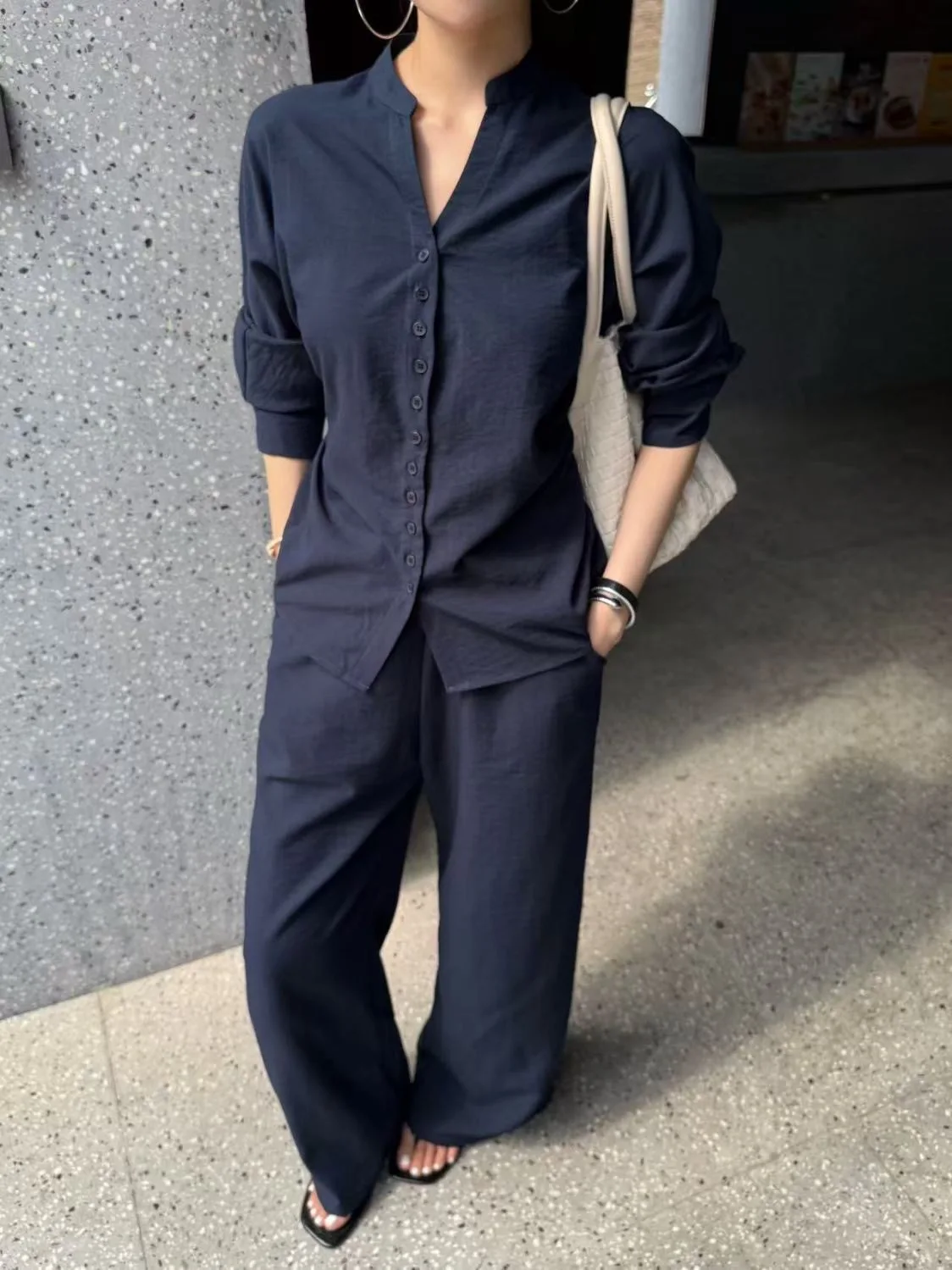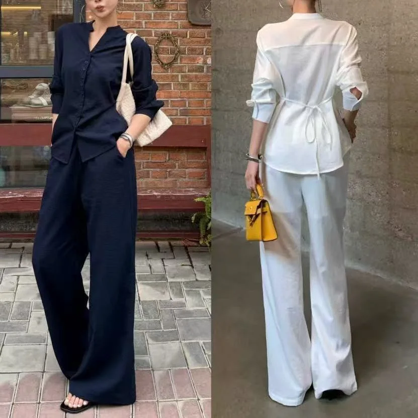 Paired with relaxed-fit casual pants, this set offers versatility for various occasions, from work to weekend outings.