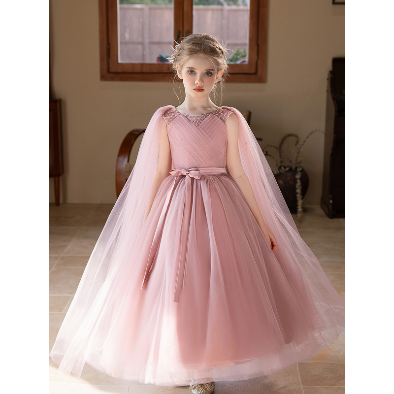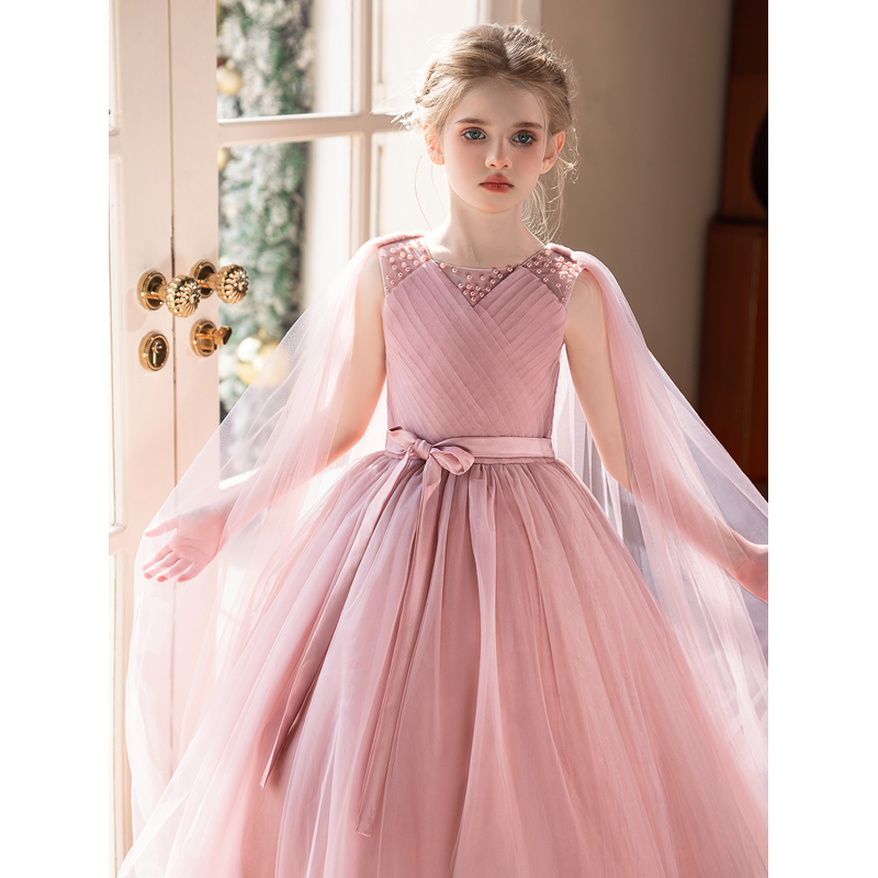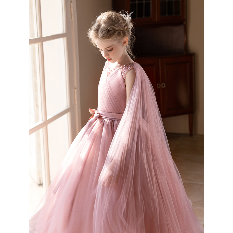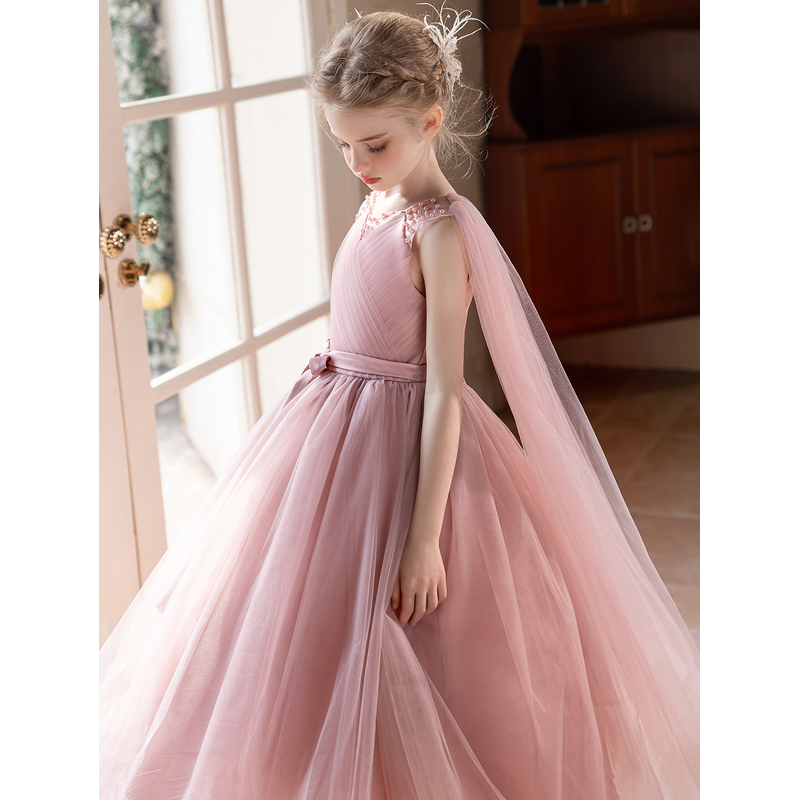Elegant Long Pink Gauze Dress for Young Girls Suitable Flower Girl Dress for Weddings Birthday Party Gown