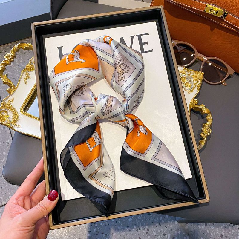 Elegant Nordic Style All Seasons Scarf Faux Silk Large Square Shawl Simple Chic Decorative Wrap For Teens