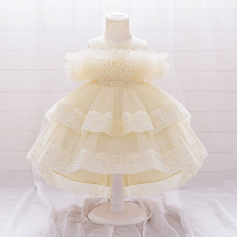 Elegant Sequin Party Baby Girl Dress Toddler Lace 1st Birthday Tailing Princess Prom Gown Wedding Bridesmaid Kid Evening Dresses