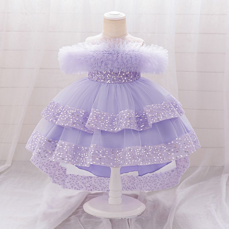 Elegant Sequin Party Baby Girl Dress Toddler Lace 1st Birthday Tailing Princess Prom Gown Wedding Bridesmaid Kid Evening Dresses