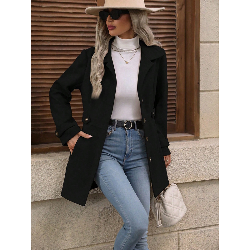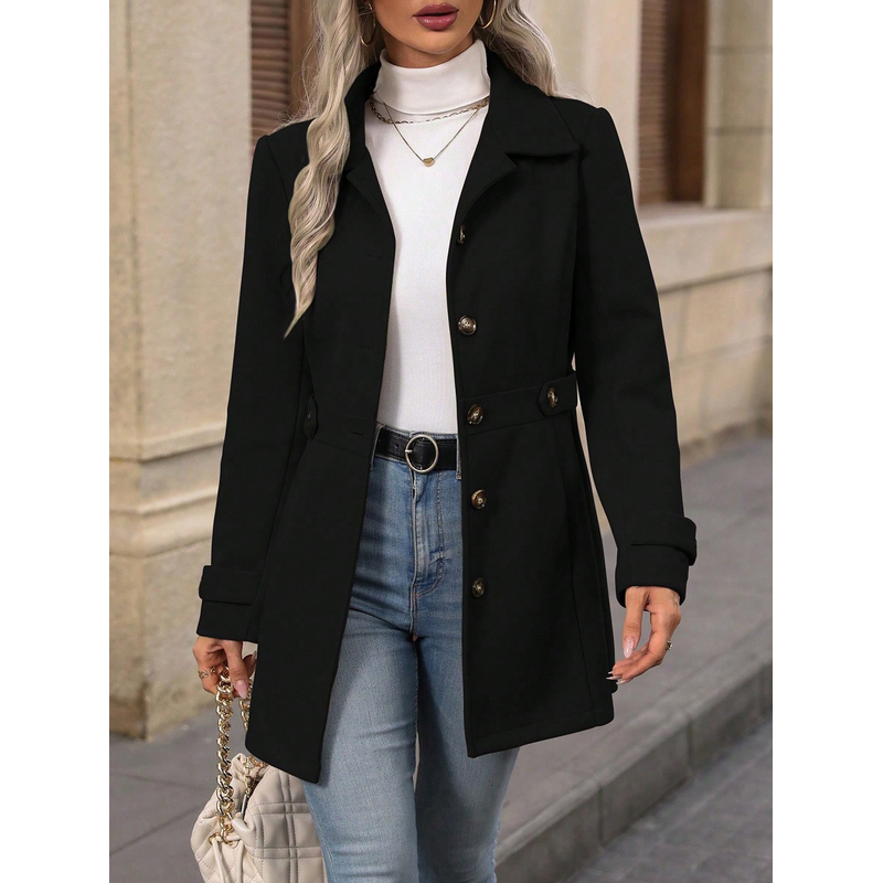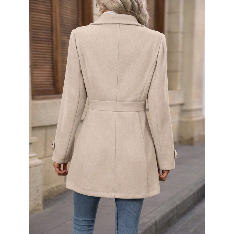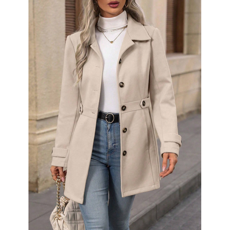 Elegant Single-breasted Woolen Coat Buttons Lapel Mid-length Jacket Temperament Commuter Outwear Clothing For Women Apricot XXL
