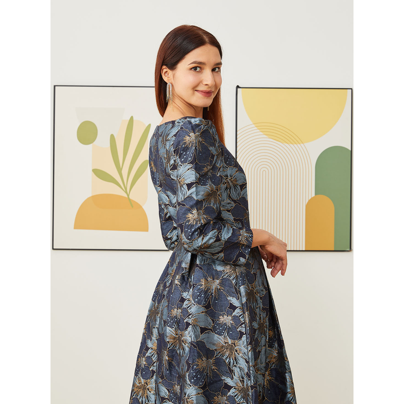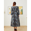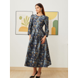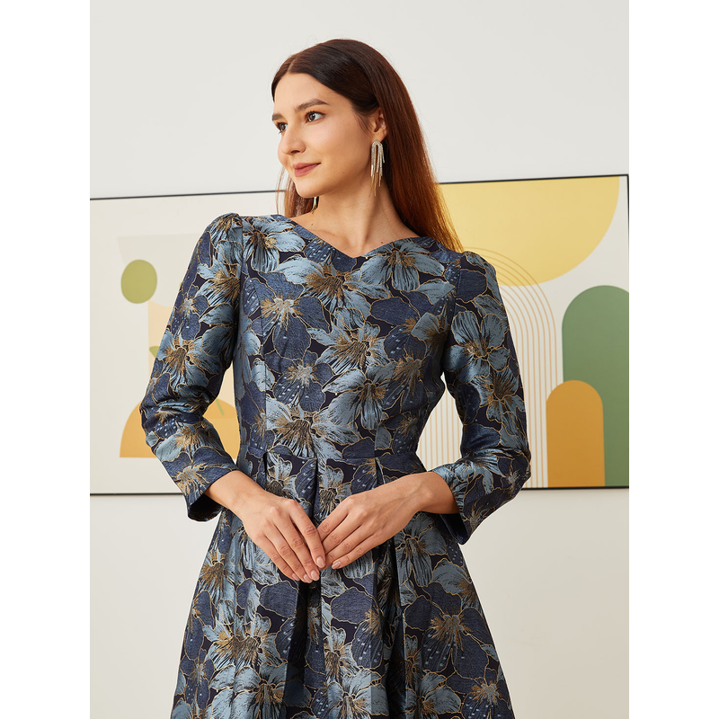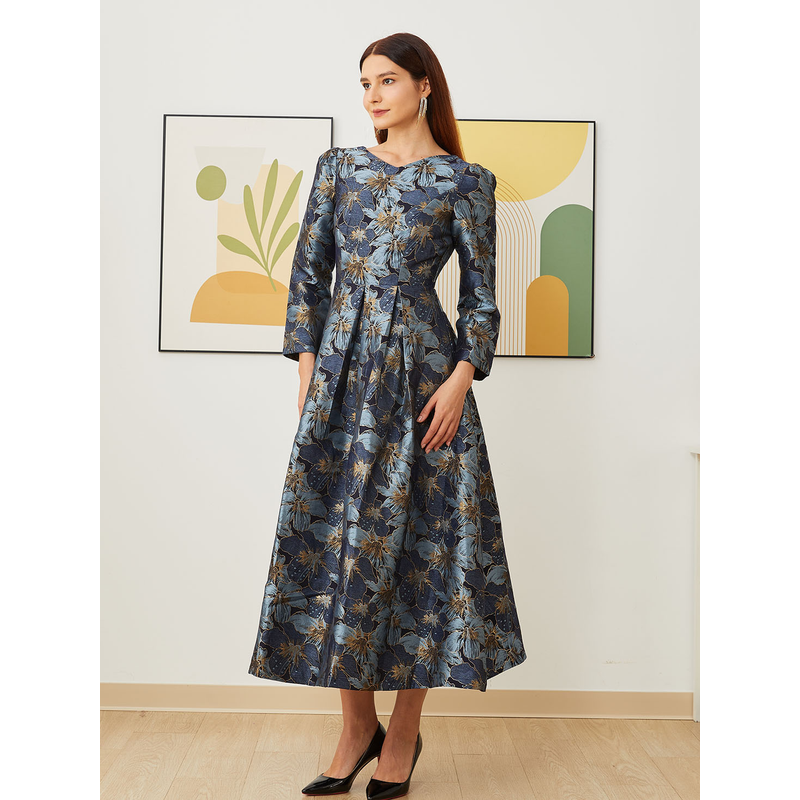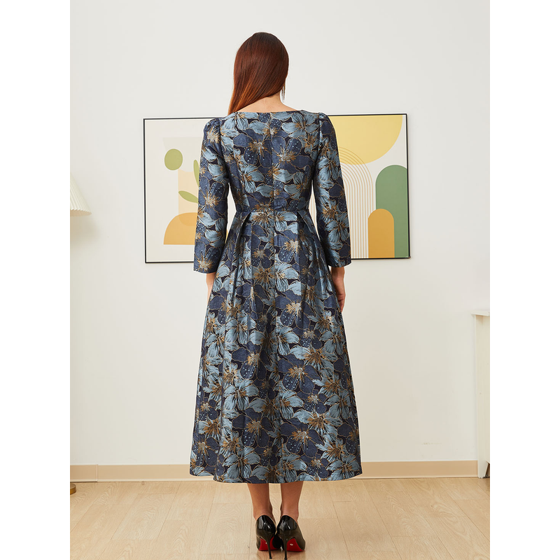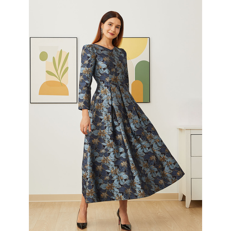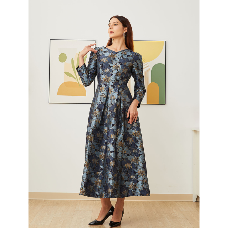 Elegant Women Long Maxi Evening Dress Floral Jacquard Fall V Neck Lady Autumn Winter Party Fashion Formal Vestidos