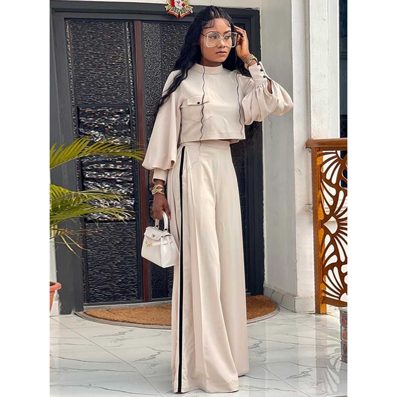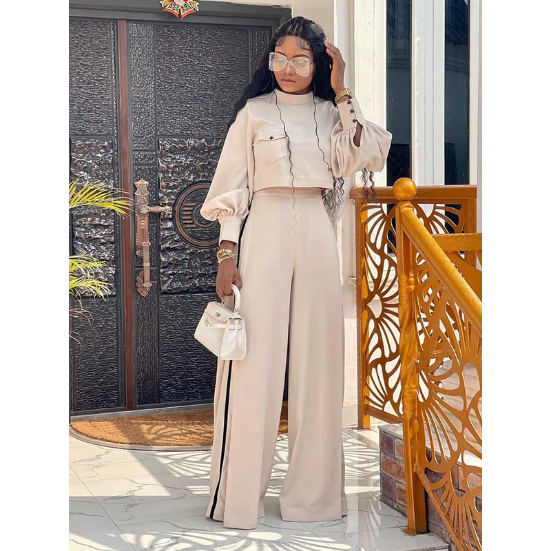 Elegant Women's Sets Two Pieces Solid Color Set Autumn Spring Piece Long Sleeve Loose Blouse and Pants Female Suit Bourgeois