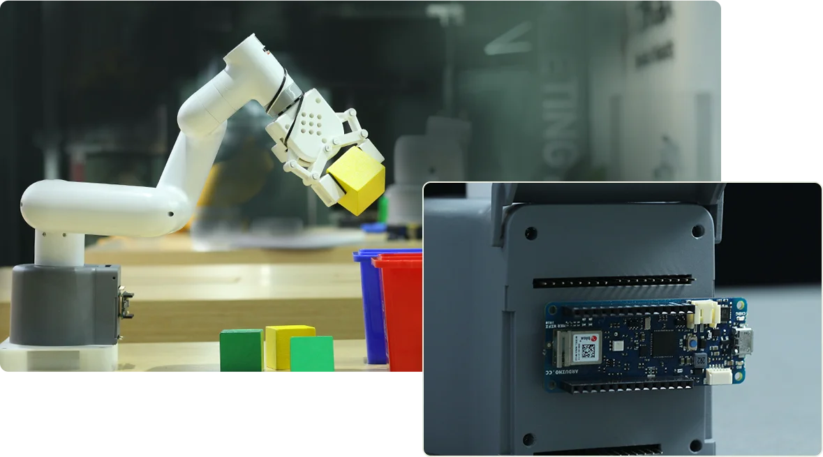 Inserted with MKRWIFI1010 \ MEGA2560 board, myCobot 280 for Arduino supports python2 / 3 driver library, ROS development, RVIZ simulation and MOVEIT interface development after flashing official firmwares. It can control the robot arm effectively and verify the algorithm virtually, which swipes out the barriers for the experimental environment and improves the experimenting efficiency.