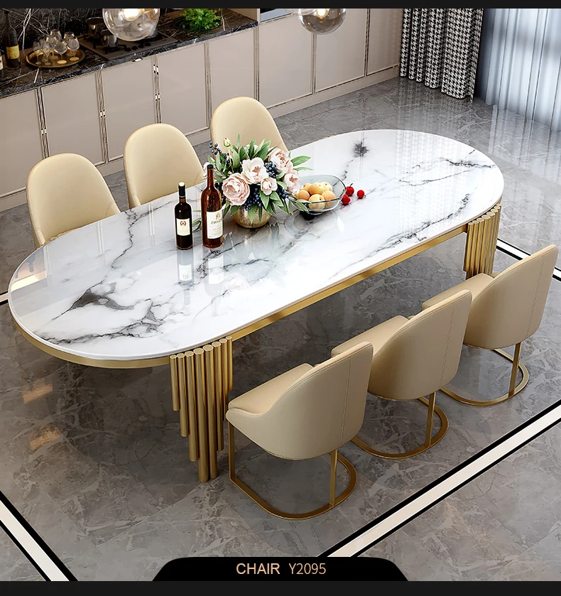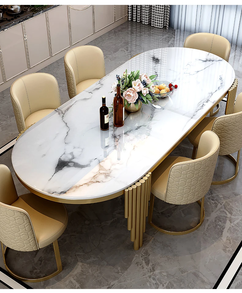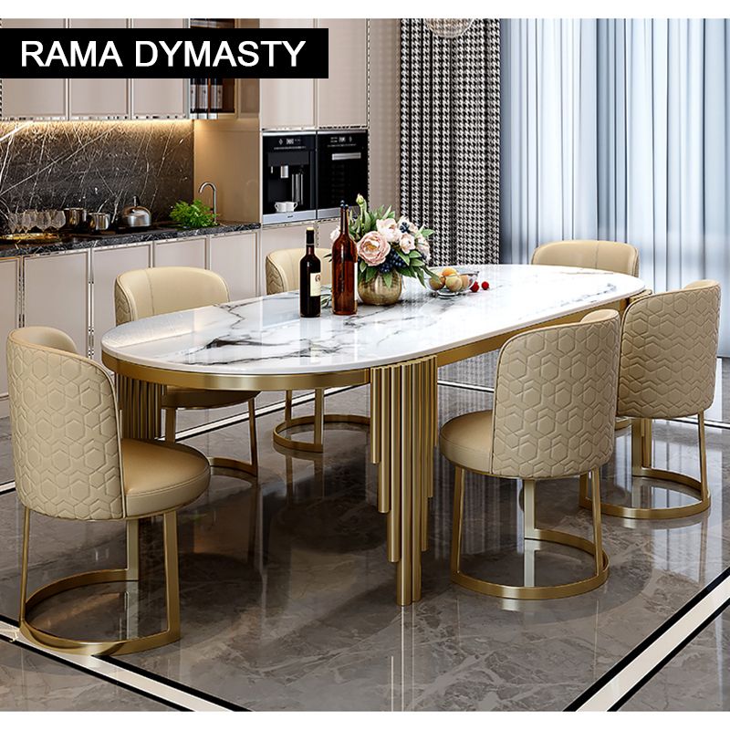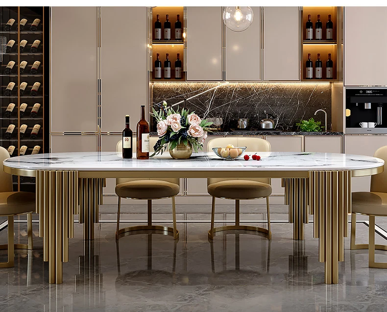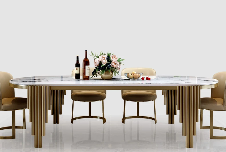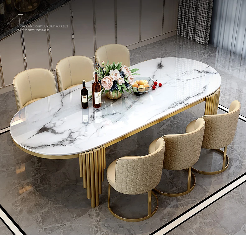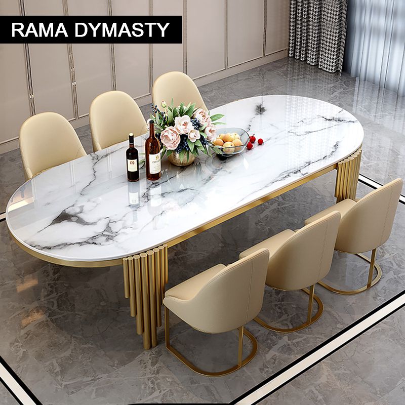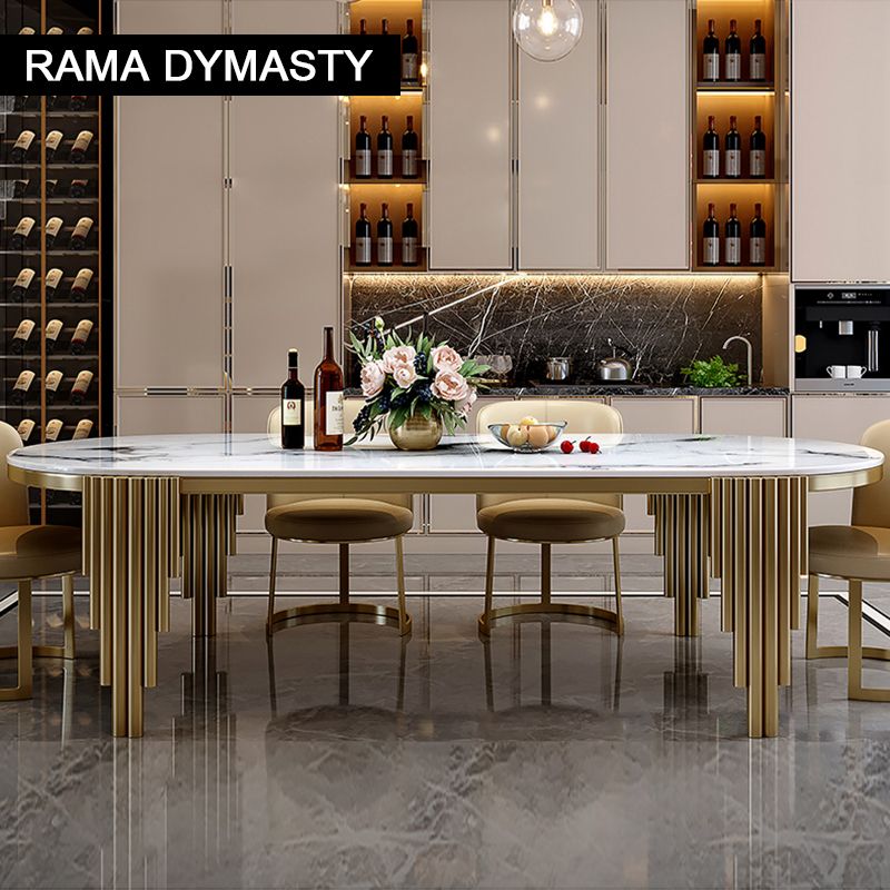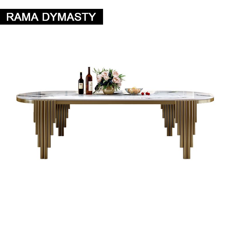 Ellipses Marble Dining Room Gold Stainless steel Leg Seats 6-8 People Dining Table