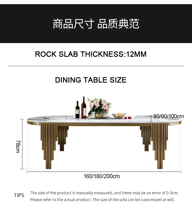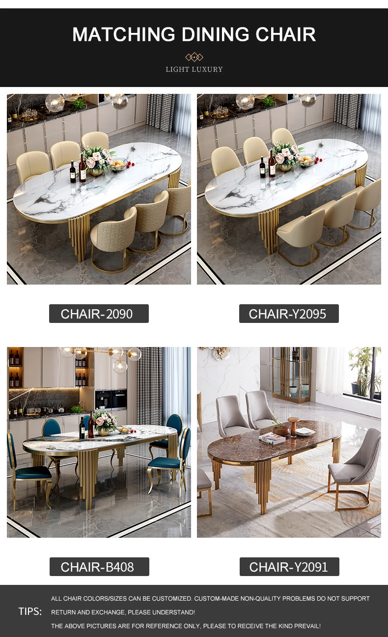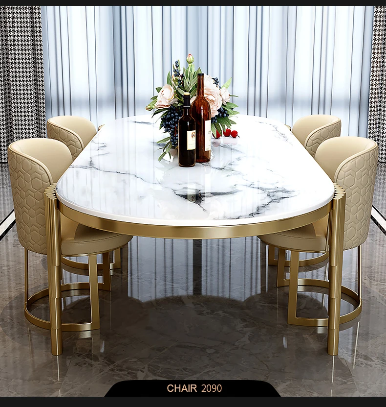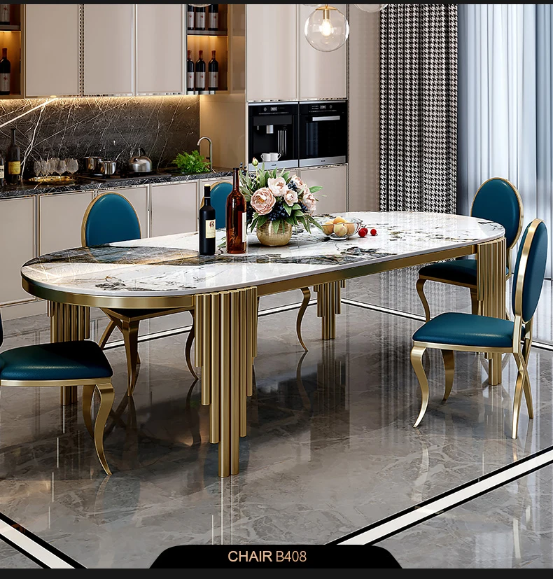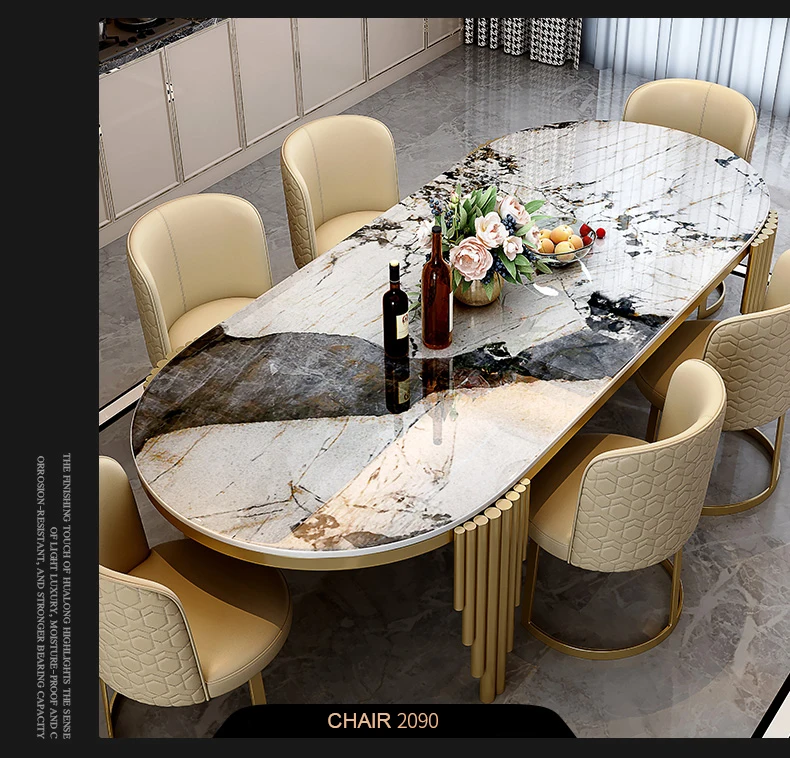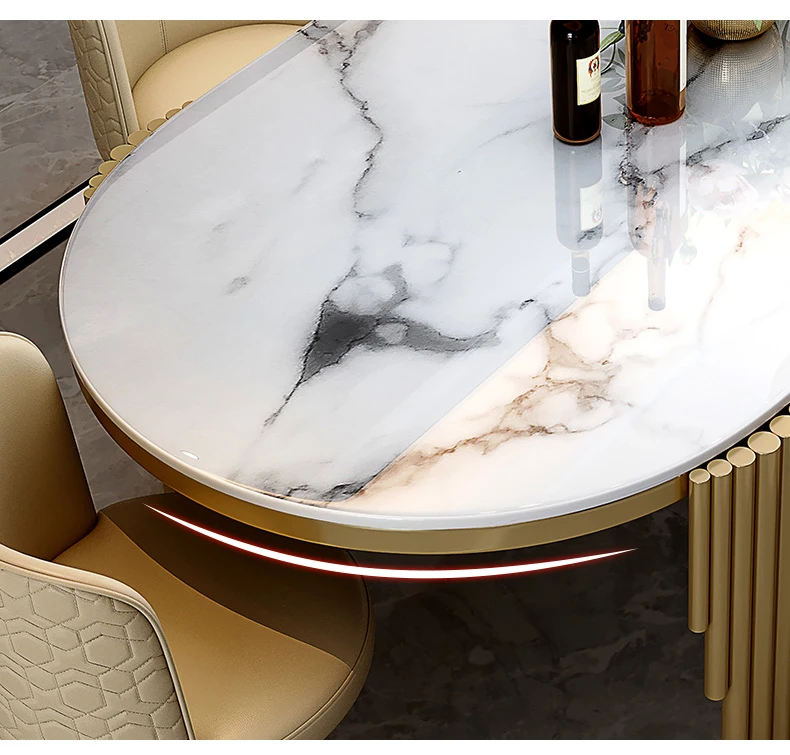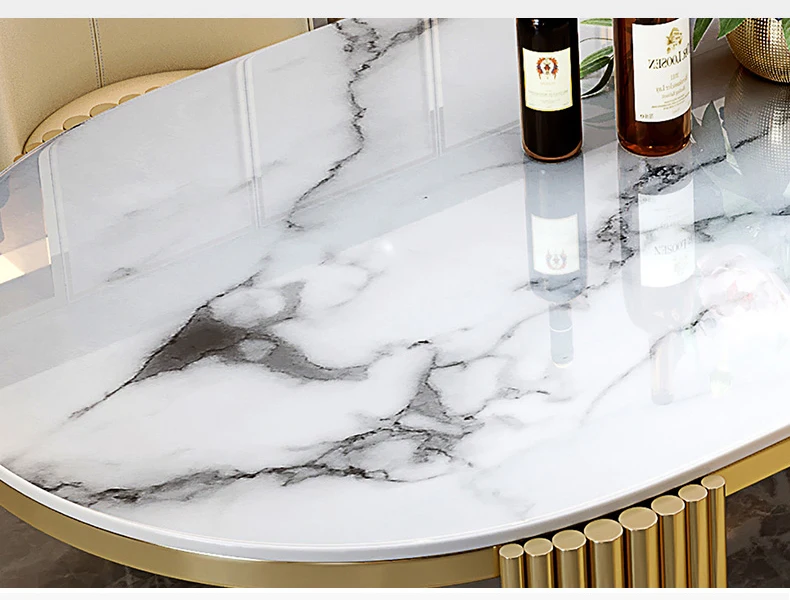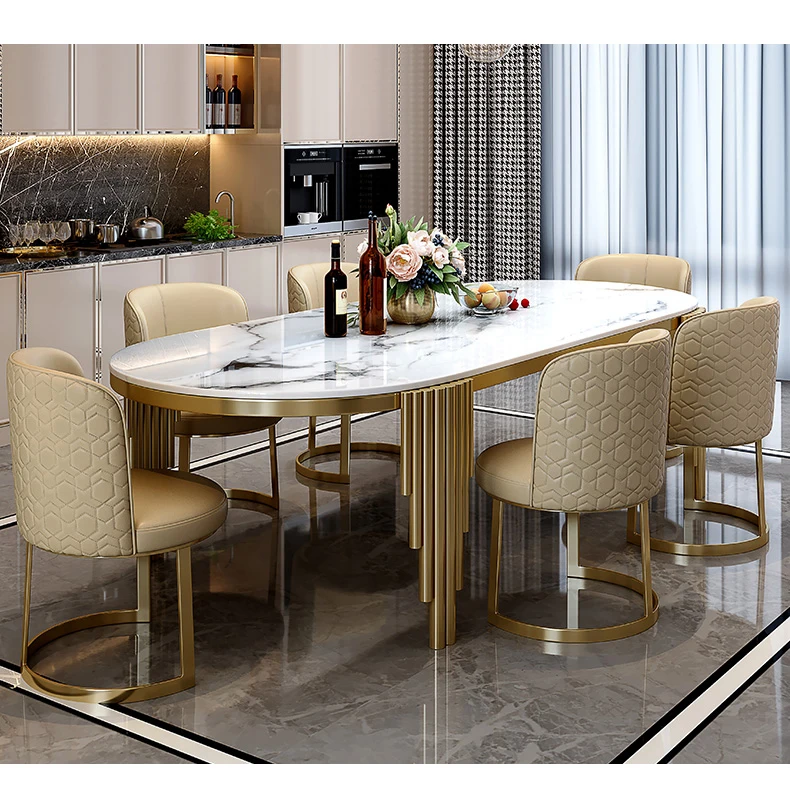 Ellipses Marble Dining Room Gold Stainless steel Leg Seats 6-8 People Dining Table