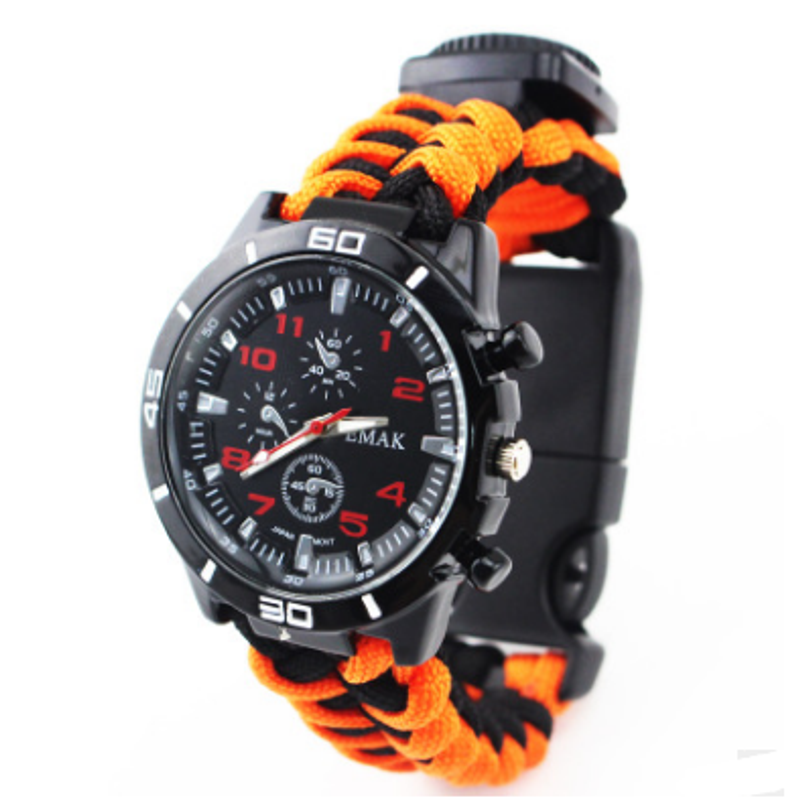 EMAK Survival Watch Camping Outdoor Medical Multi-functional Compass Thermometer Rescue Paracord Wristband Equipment Tools kit Orange