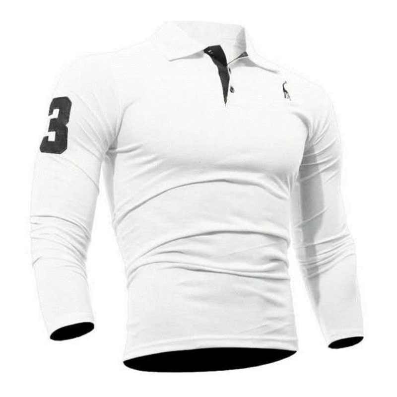 Embroidered Deer Digital Polo Collar Men's Long Sleeve White 3XL