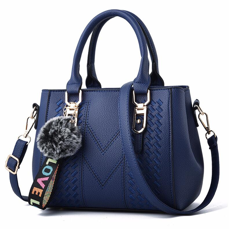 Embroidery Messenger Bags Women Leather Handbags Bags for Women Sac a Main Ladies hair ball Hand Bag