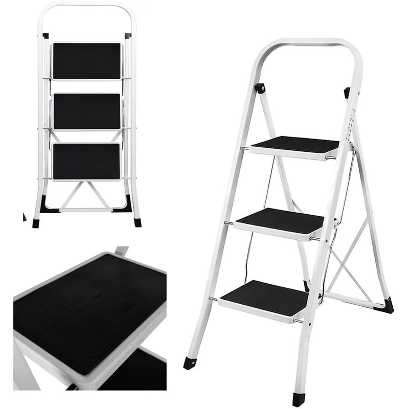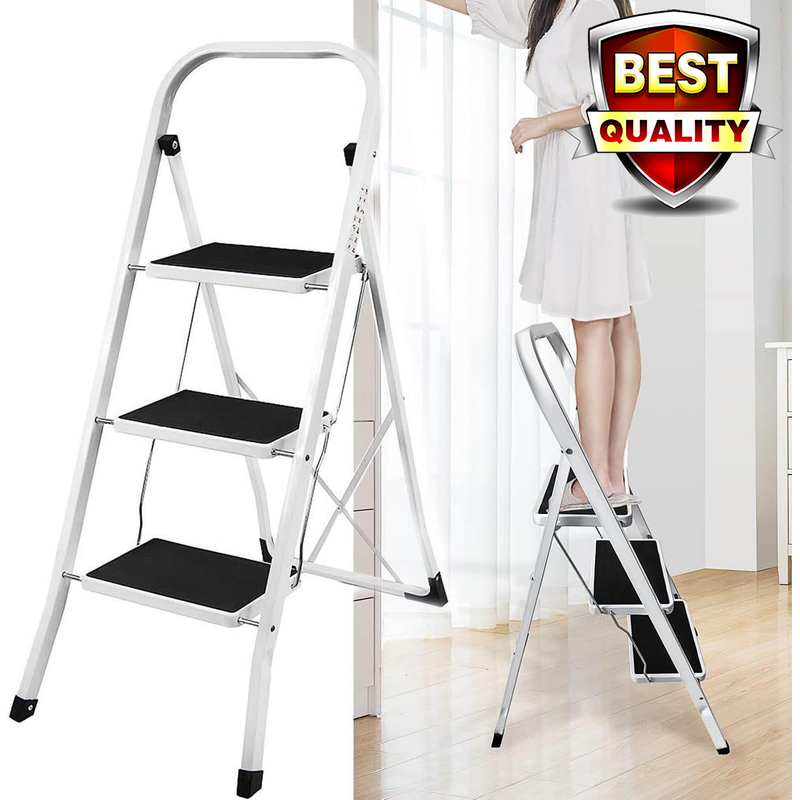 EMDTOOL 3 Step Ladders Folding Portable Foldable Steel Ladder Non-Slip Stable & Safer Heavy Duty Stepladder Stool Tool for Home