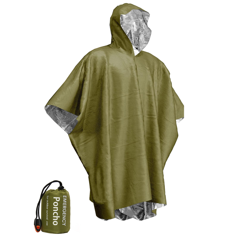 • [EMERGENCY SURVIVAL RAIN PONCHO & BLANKET] When bad weather comes, rain poncho will keep you dry, clean, and safe. The 28µm thick thermal rain coat can serve as an emergency blanket, which will retain 90% of your body heat to help prevent hypothermia, and is waterproof and windproof.