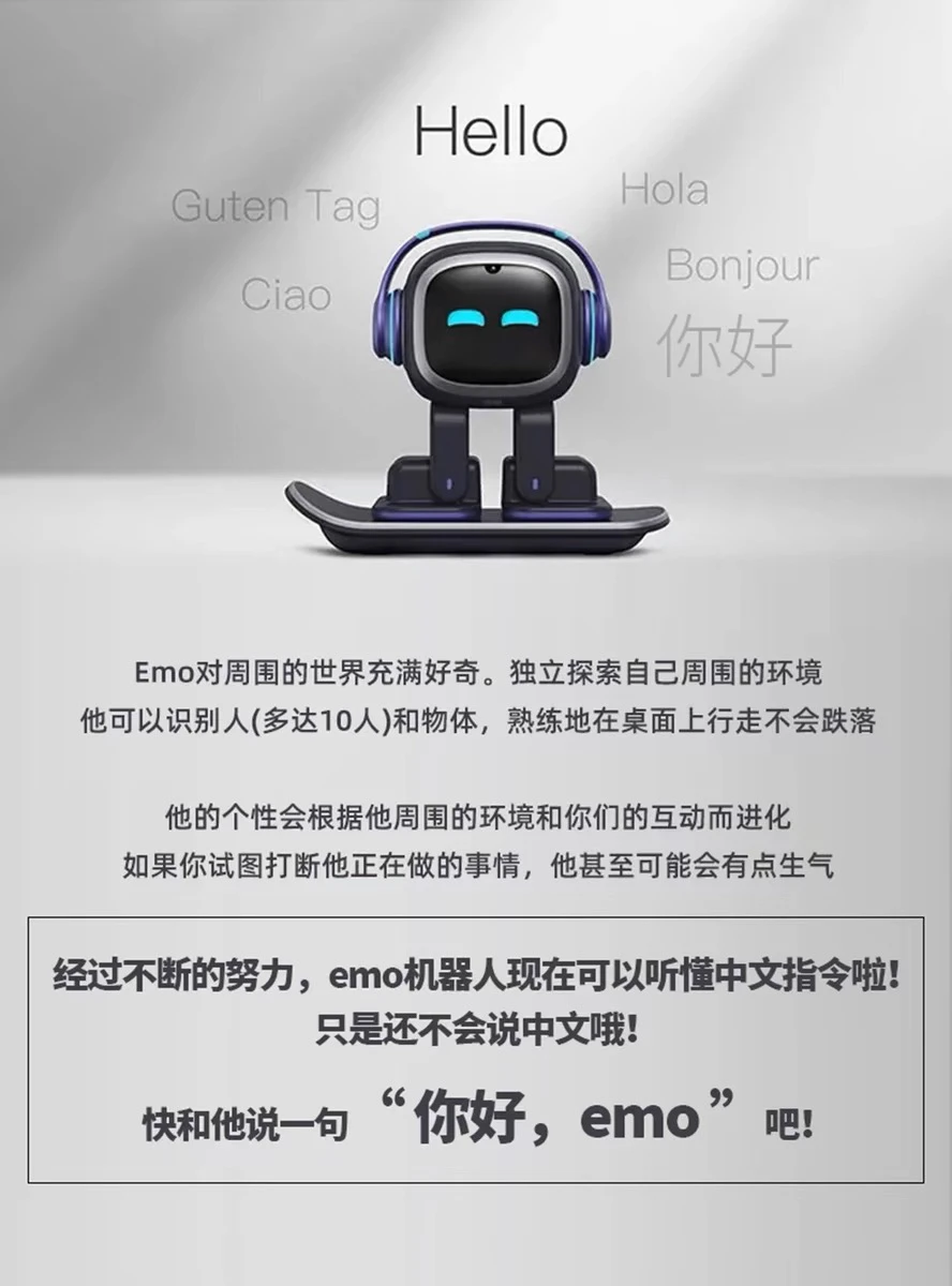 emo smart desktop AI emotional pet robot Shenzhen spot second hair white
