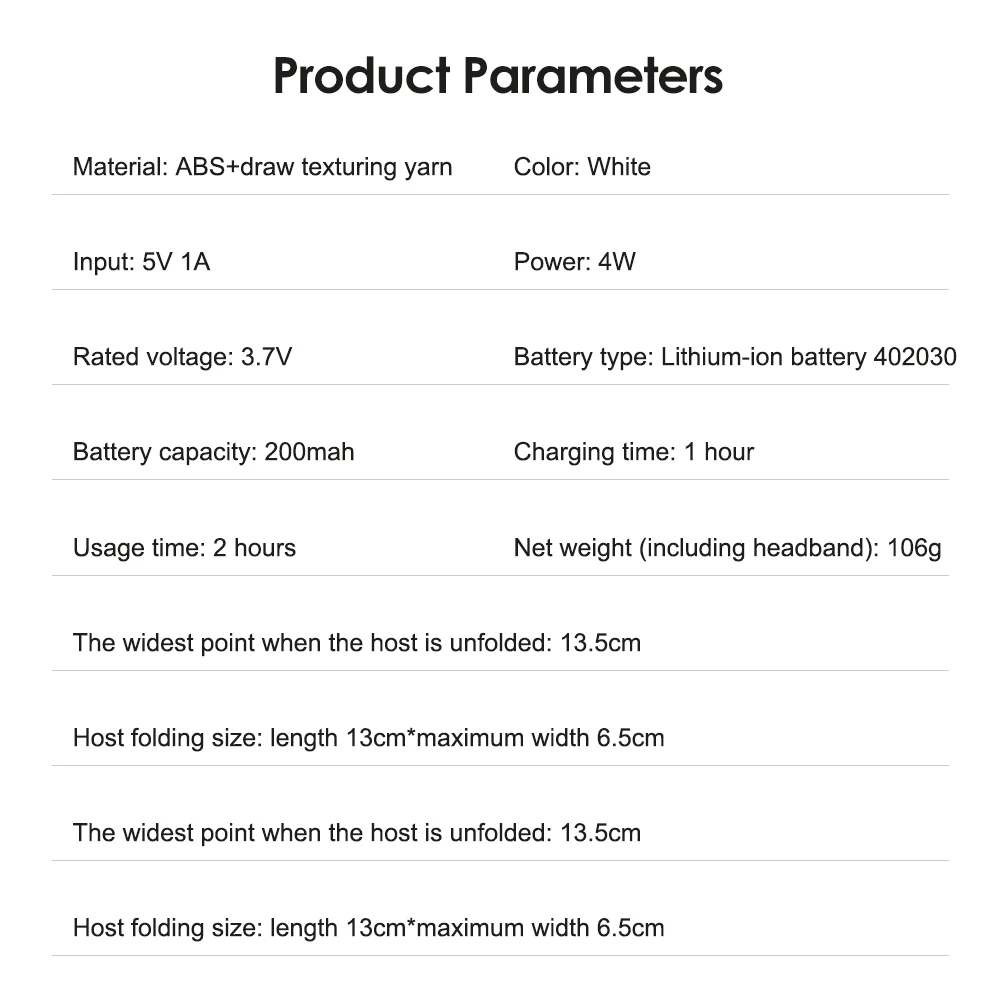 Net weight (including headband): 106g