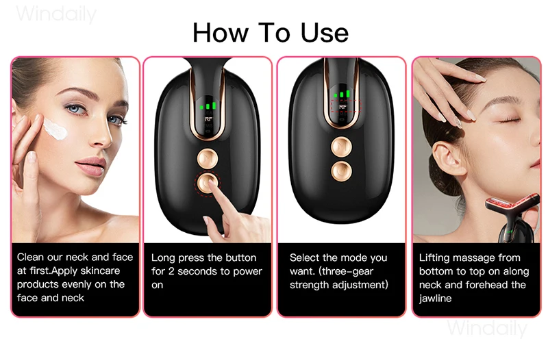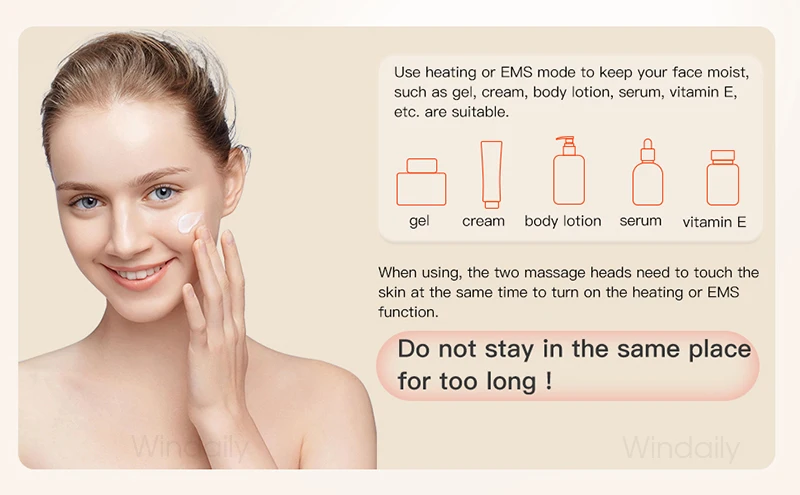 Keep your face moist enough with your favorite lotion, cream or serum before use. Start from low intensity and increase the intensity gradually as you get used to the low gear. Use this face massager 8 minutes per day to upgrade your age-defying skincare routine, help you to enjoy the facial skin care at home, no need spending too much in the beauty salon.