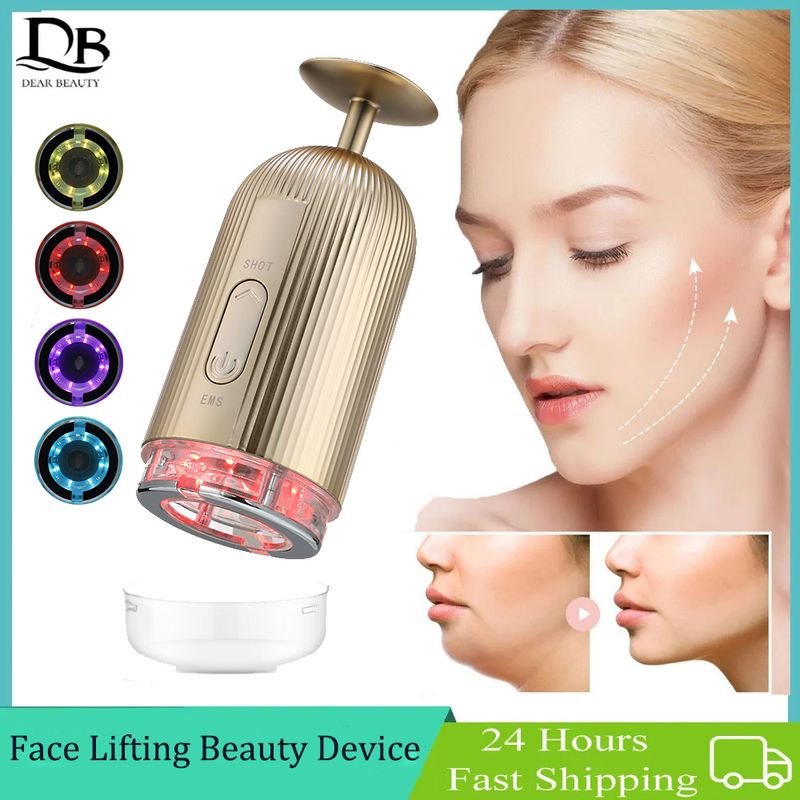 EMS Microcurrent Facial Massager 4 Colors LED Light Therapy Vacuum Suction Cupping Skin Tightening V Face Lifting Beauty Device