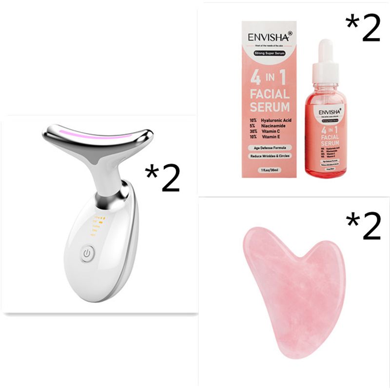 EMS Thermal Neck Lifting And Tighten Massager Electric Microcurrent Wrinkle Remover LED Photon Face Beauty Device For Woman Black Set4