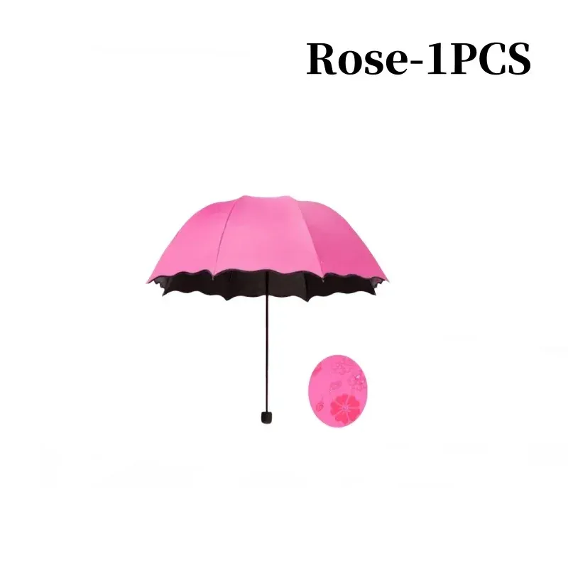 Encountering Water Flowering Umbrellas Handheld Parasol Frame Rain Travel Umbrella 3 Fold UV Protect Color Changing Umbrella