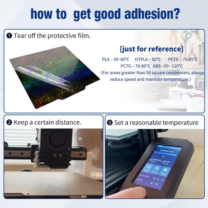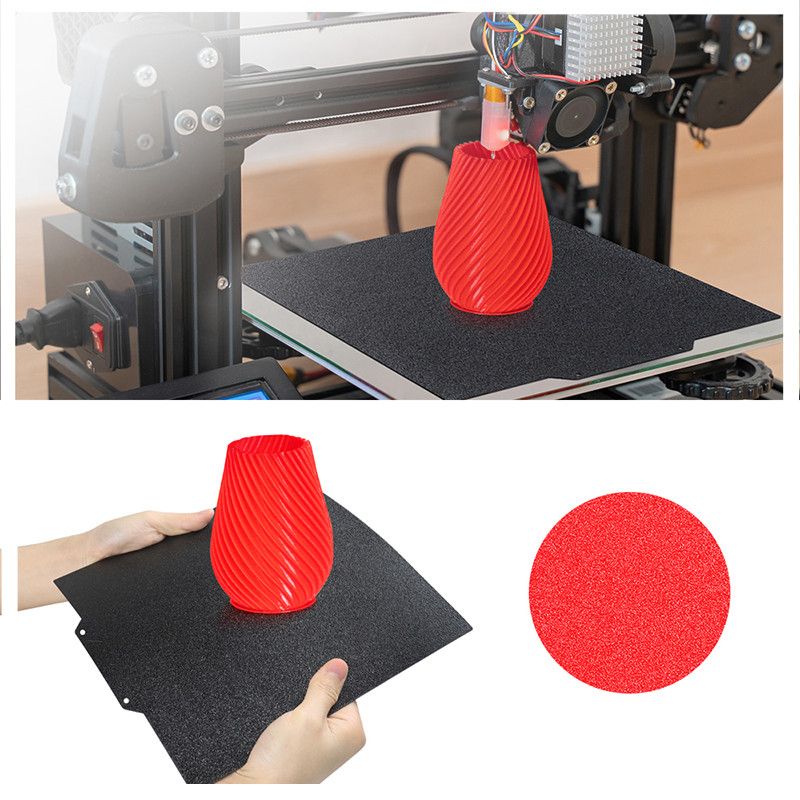 4.Textured PEI coating Surface is up to 300℃.print PLA/PLA+/PETG/ABS/TPU