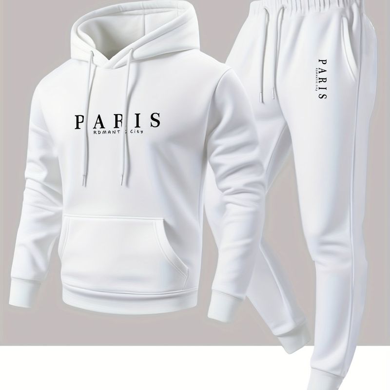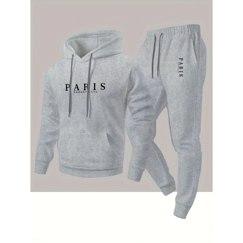 Ensemble décontracté sweat à capuche et pantalon de survêtement imprimé Paris pour le sport et les activités de plein air