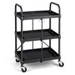 Sufficient Classified Storage Space: Designed with 3 spacious shelves, this tool cart can accommodate a variety of screwdrivers, pliers, drills, and other tools. There is a 31cm gap between each shelf, which is suitable for higher items like storage baskets. What's more, each layer has 4 small grooves to help you sort out small tools. Upgraded Heavy-Duty Structure: Crafted from a high strength metal frame, the folding tool trolley is not easy to crack, deform or peel. And the anti-rust finish makes it last for a long time. What's more, it comes with a support back bar to form a triangle structure to reinforce the structure for higher sturdiness. Effortlessly Mobile Your Tools: Equipped with 4 universal casters, the utility cart can easily carry your tools to wherever you need them. Moreover, 2 of them are lockable to help you safely park the cart in the proper place. And 2 built-in handrails enable you to push the cart without too much energy. Assembly-free and Folding Design: The tool cart is ready to use right out of the package, no assembly is required. And it can be folded to a compact size for convenient storage in a corner by simply pulling up the top pull ring. Weighing only 8kg, you can also take it with you on your travels. Multi-use in Various Occasions: With a practical and classic design, our folding 3-tier tool organizer can serve as a storage cart, grocery cart, tool cart, or service cart according to your needs. Moreover, it is portable for multiple occasions, such as a workshop, warehouse, office, laundry house, kitchen, etc. Specifications Material: Metal Open dimension: 59 x 44 x 96cm (L X W X H) Folding dimensions: 44 x 12 x 110cm (L X W X H) Each shelf weight capacity: 15 kg Net weight: 8 kg Package includes: 1 x 3 Shelf folding rolling trolley 1 x Instruction