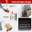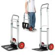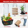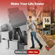 High-Grade Wheels and Adjustable Height: The hand truck is equipped with 2 all-terrain wheels which are wear-resistant and low-noise. Therefore, the folding hand cart is easy to move anywhere you want and saves much effort to carry items. Meanwhile, you can adjust the height by pushing the stretch lever forward to satisfy different needs. Easy to Fold and Expand: With a quick-folding design, the hand cart is space-saving for storage. To expand, you just need to pull out the handle with the folding telescopic handle, and then step on the metal plate until it turns flat. Heavy-Duty Aluminum Frame: This folding sack truck is mainly made of aluminum, which is lightweight yet sturdy. And the metal plate can load up to 100kg, which is large and solid enough to carry most items. Multiple Suitable Occasions: With strong load capacity and portable design, this aluminum hand trolley will help you a lot on different occasions. You can use the luggage cart in the warehouse, garage, backyard, and so on for more convenience. No Need to Assemble: The folding sack trolley has been fully assembled before delivery, so you just need to expand it for direct use. When finishing using it, you can store the dolly utility cart in the corner of your room or in the car trunk. Specifications Net weight: 5kg Material: Metal, aluminum Overall dimension: 37 x 40 x 71/108cm (L x W x H) Folding dimension: 37 x 19 x 71cm (L x W x H) Dimension of metal plate: 35 x 25cm (L x W) Weight capacity: 100kg Package includes: 1 x Folding hand truck 1 x Instruction