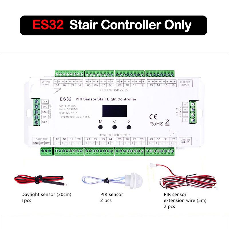 ES32 Stairs Led Light Controller PIR Sensor 32CH Single Color 2CH RGB Pixel SPI LED Strip Dimmer Sensor Stair Light Controller