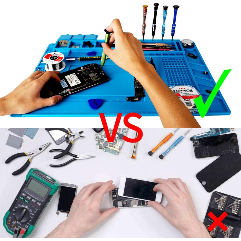 • 【ANTI-SLIP & ANTI-STATIC / EASY CLEAN】Adopt anti-slip design both of surface and back, and it is static-free making your repair work easy. Soft silicone material is very easy to clean and roll-up for convenient storage.
