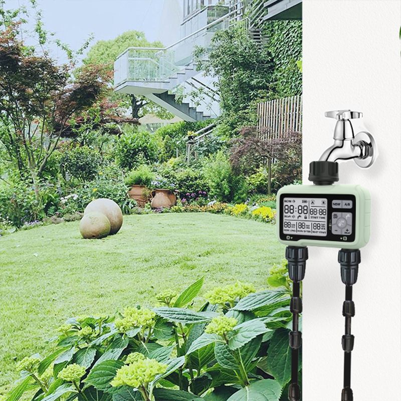 2 Independent Watering Zones: Our sprinkler water timer features 2 separate water outlets, each programmable using the "A/B" buttons. Customize watering schedules for each zone independently, ensuring no interference between them. It allows for efficient management of large-scale irrigation, saving you time and effort in garden or farm maintenance.