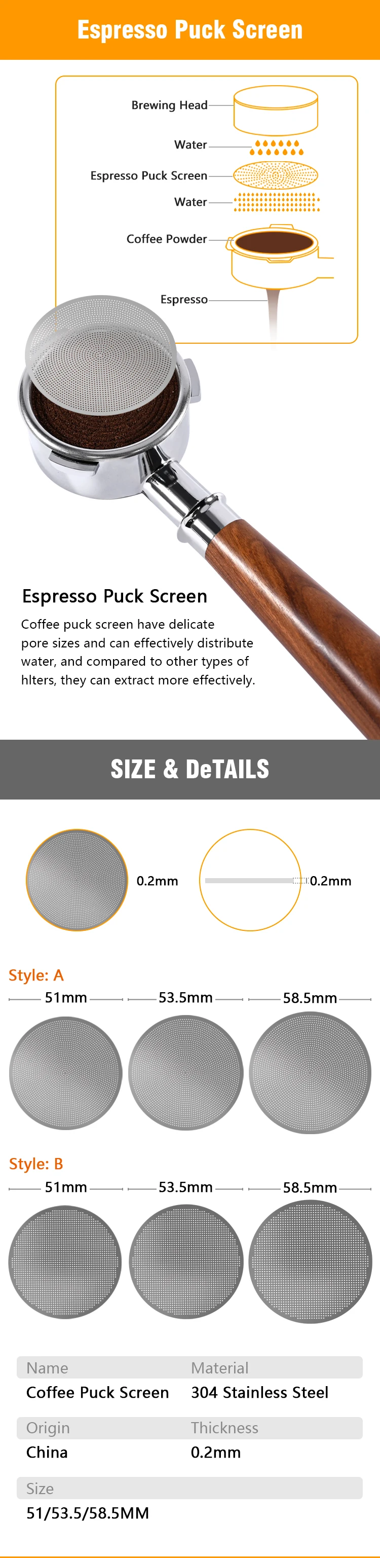 Espresso Puck Screen Coffee Filter Reusable Stainless Steel Holder 0.2mm For 51/54/58mm Coffee Portafilter Barista Accessories