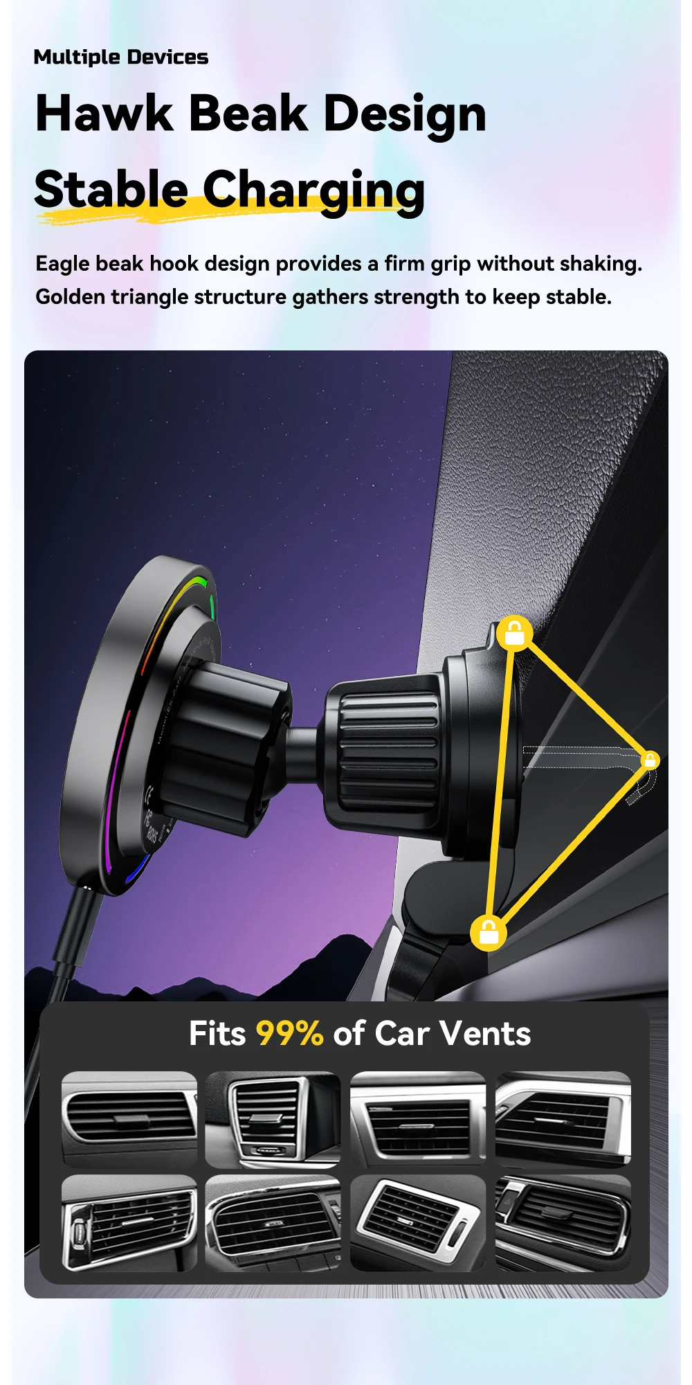 Note:Its with strong magnetic function, but for iPhone 12/13/14/15/16 series, please charge the phone with the original magsafe case or without case, And for other phones please work with the metal ring.