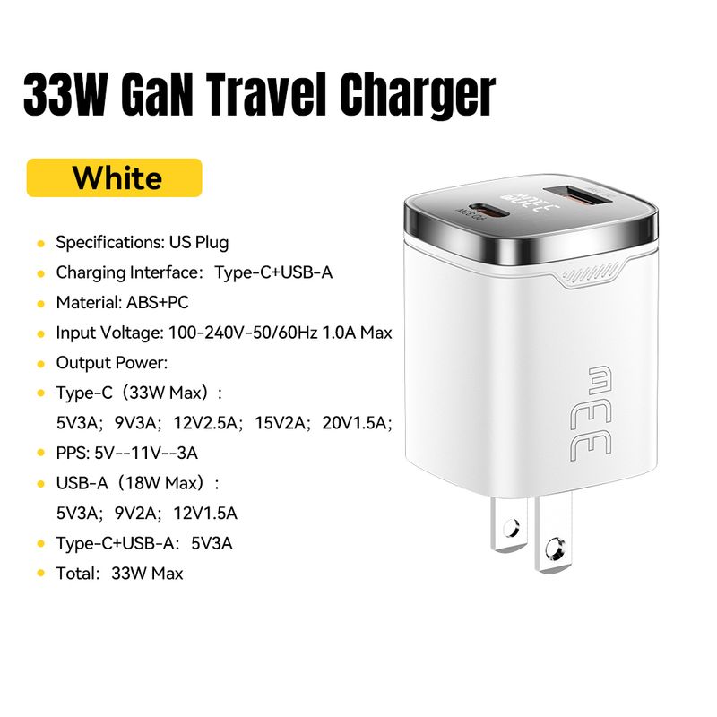 Essager 33W GaN USB Type C Charger Digital Display PD Fast Charging For iPhone 16 15 14 Pro Max iPad Mini 6 Xiaomi Samsung S22