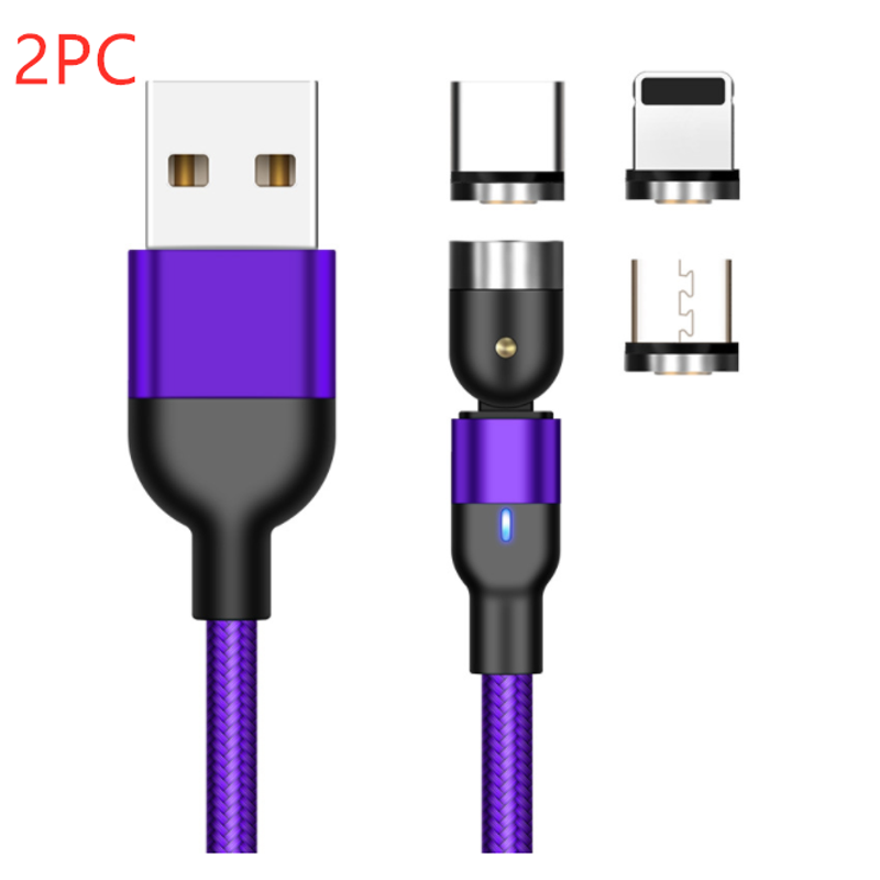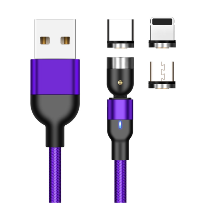 Essager Rotate Magnetic Cable 360 Degree USB Type C Charging Cable Fast Charging Magnet Charger 540 Rotate Micro Magnetic Cable Purple 1m Type c Apple and Androi