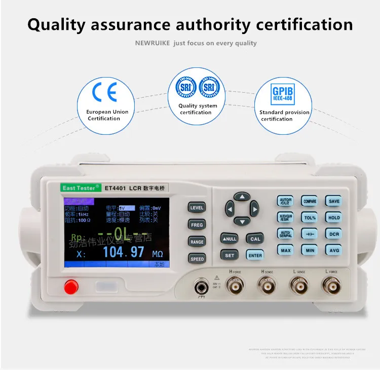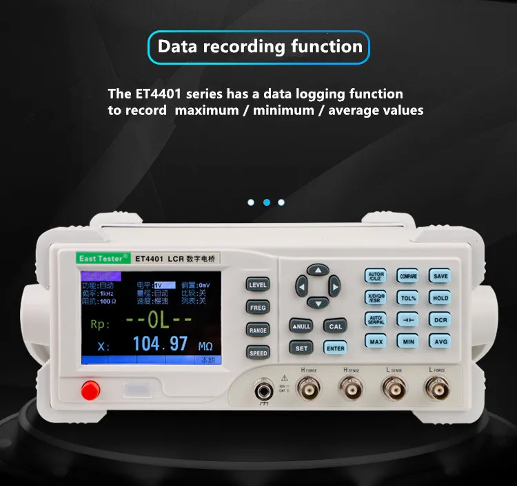 ET44series LCR digital bridge is designed using automatic balance bridge principle component parameter analyzer, the tests of 10 hz ~ 100 KHZ bandwidth,  0.1% of the basic classification function provided by the accuracy of measurement and instrument for the vast majority of components and materials to provide accurate and complete the survey and analysis, is widely used in product research and development, components such as incoming inspection, product online applications.