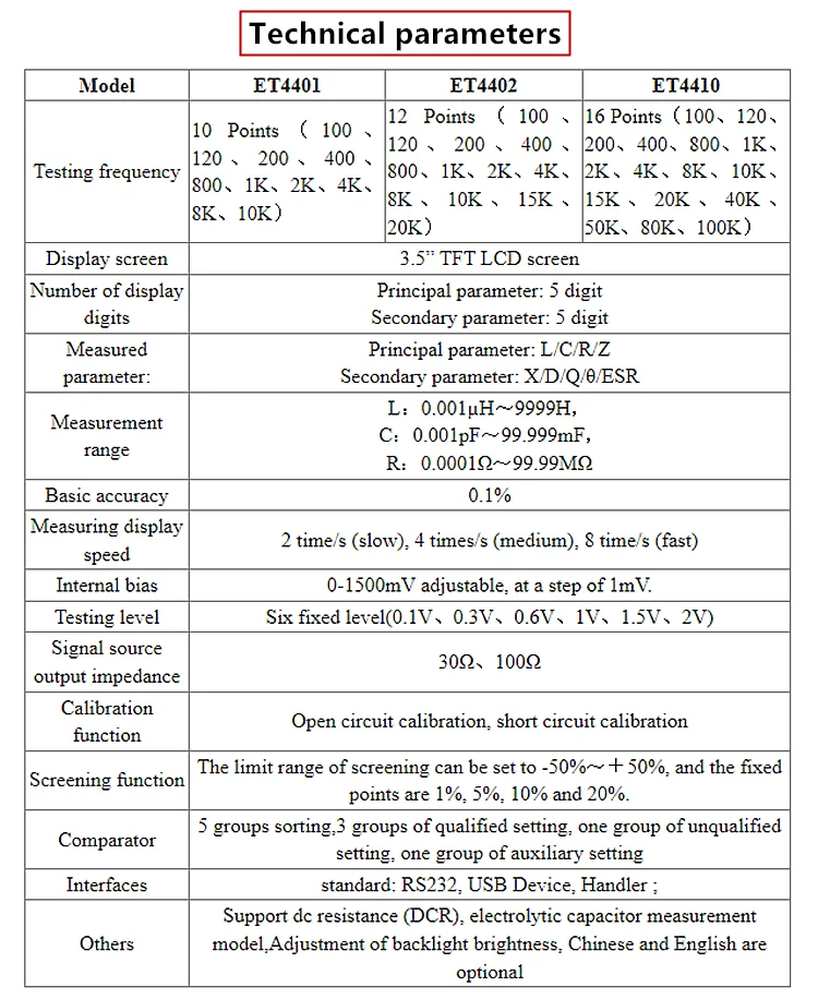 ET4401 ET4402 ET4410 Desktop LCR Digital Bridge Capacitance Resistance Impedance Capacitance Inductance Measure Instrument