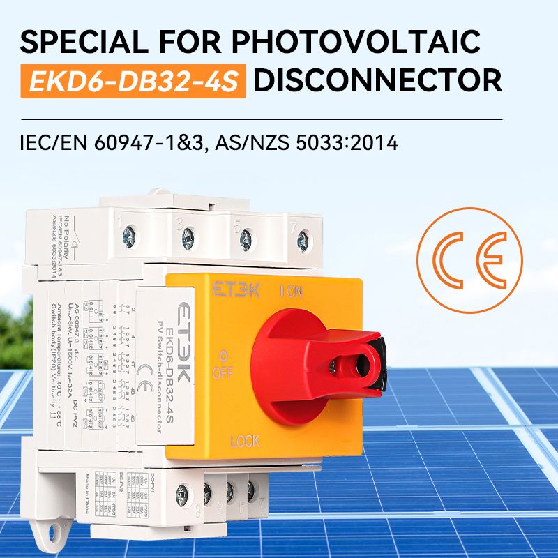 ETEK DC Solar Isolator Switch PV 1000V 32A 2P Din Rail Mounting Rotating Handle CE Disconnector For Solar Certified EKD16-DB32