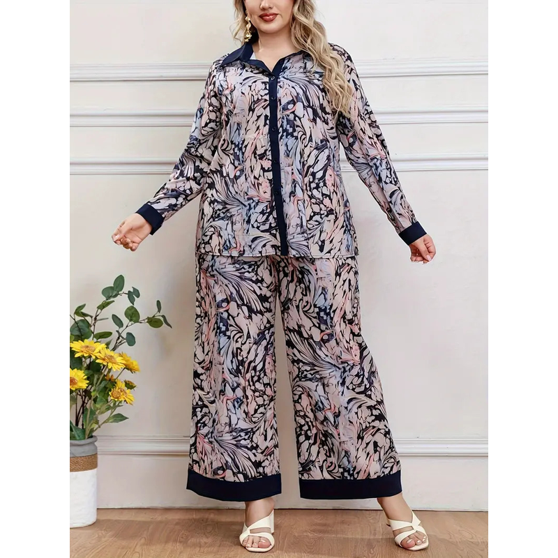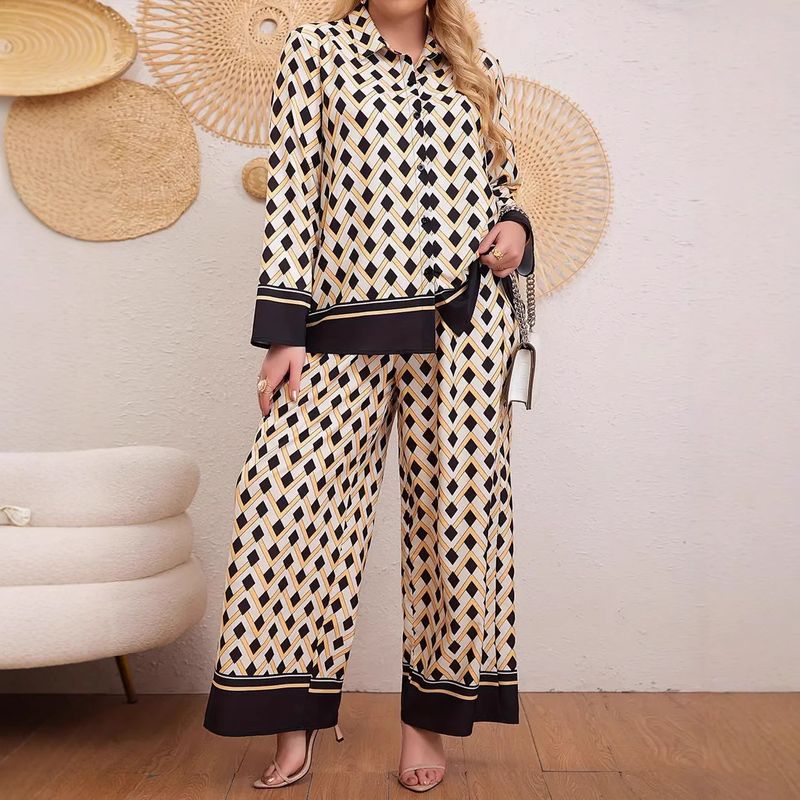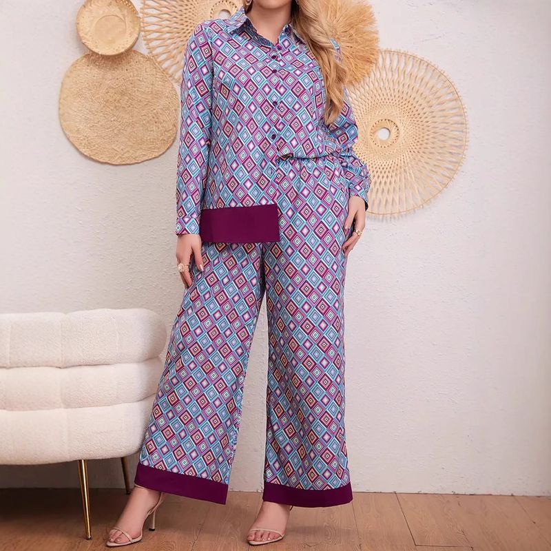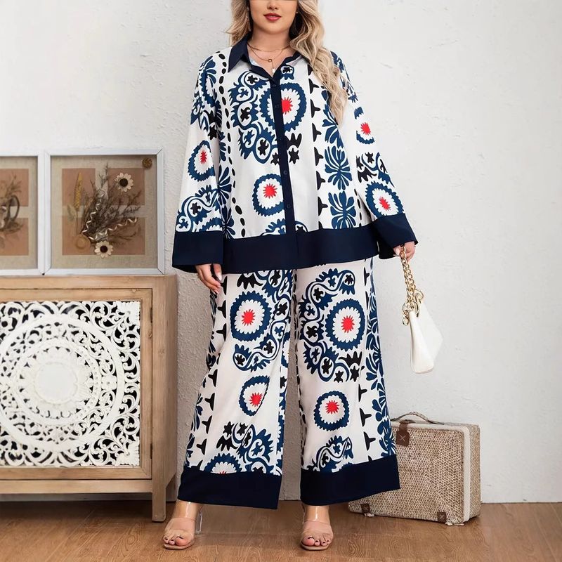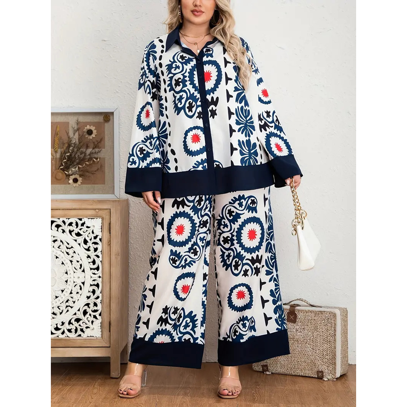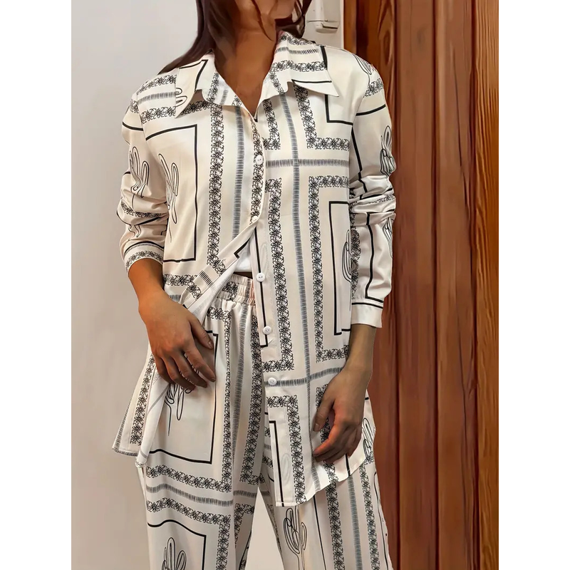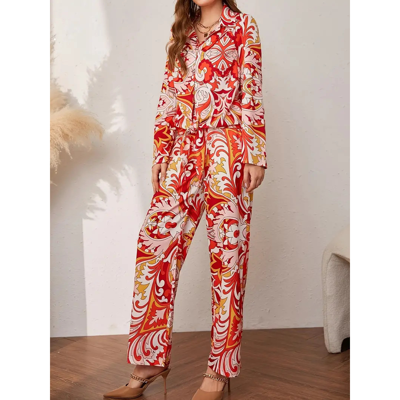 Ethnic Geometric Long Sleeve Shirt Trousers Suit WG18WR06ZN241031T013 M
