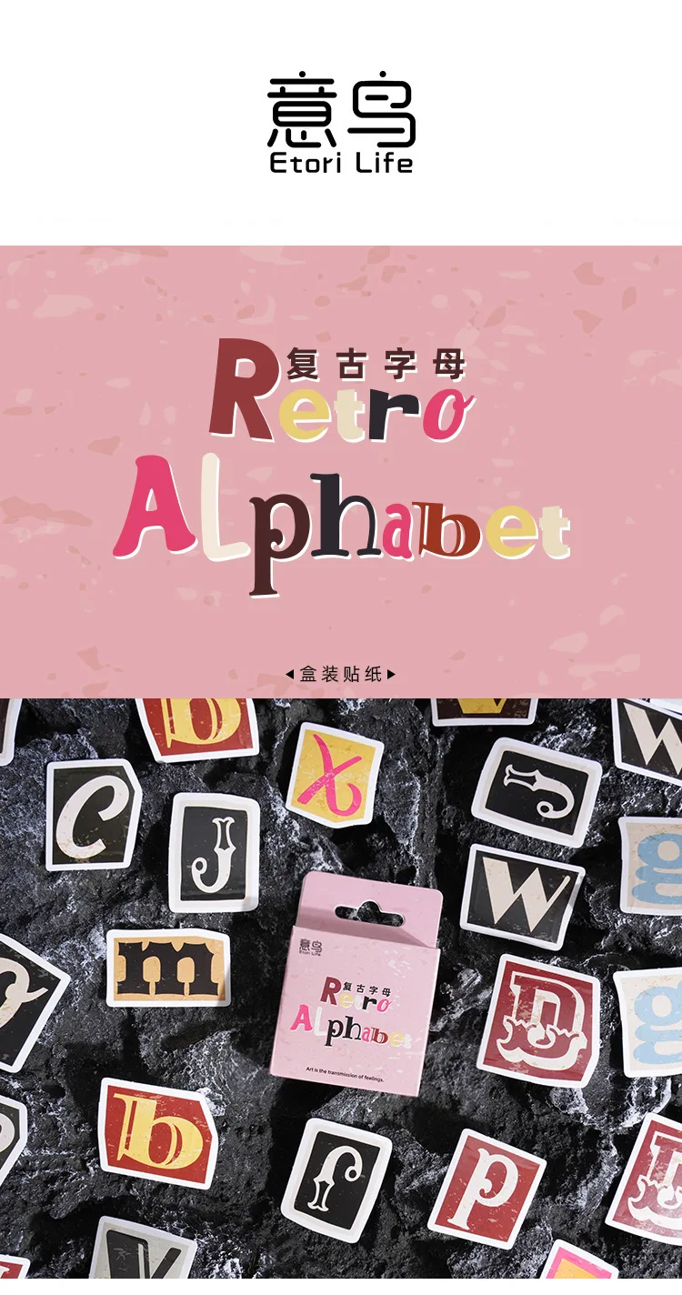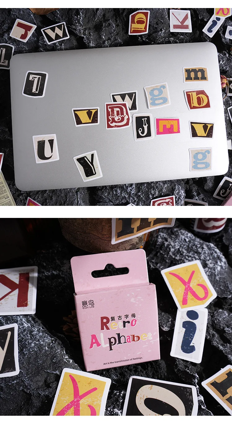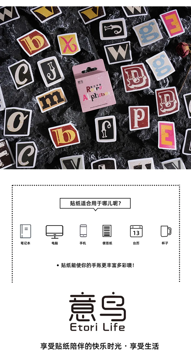 Etori Life Colorful English Letter Sticker 46pcs DIY Decorative Stationery Diary Cup Notebook Mobile Phone Toy Scrapbook