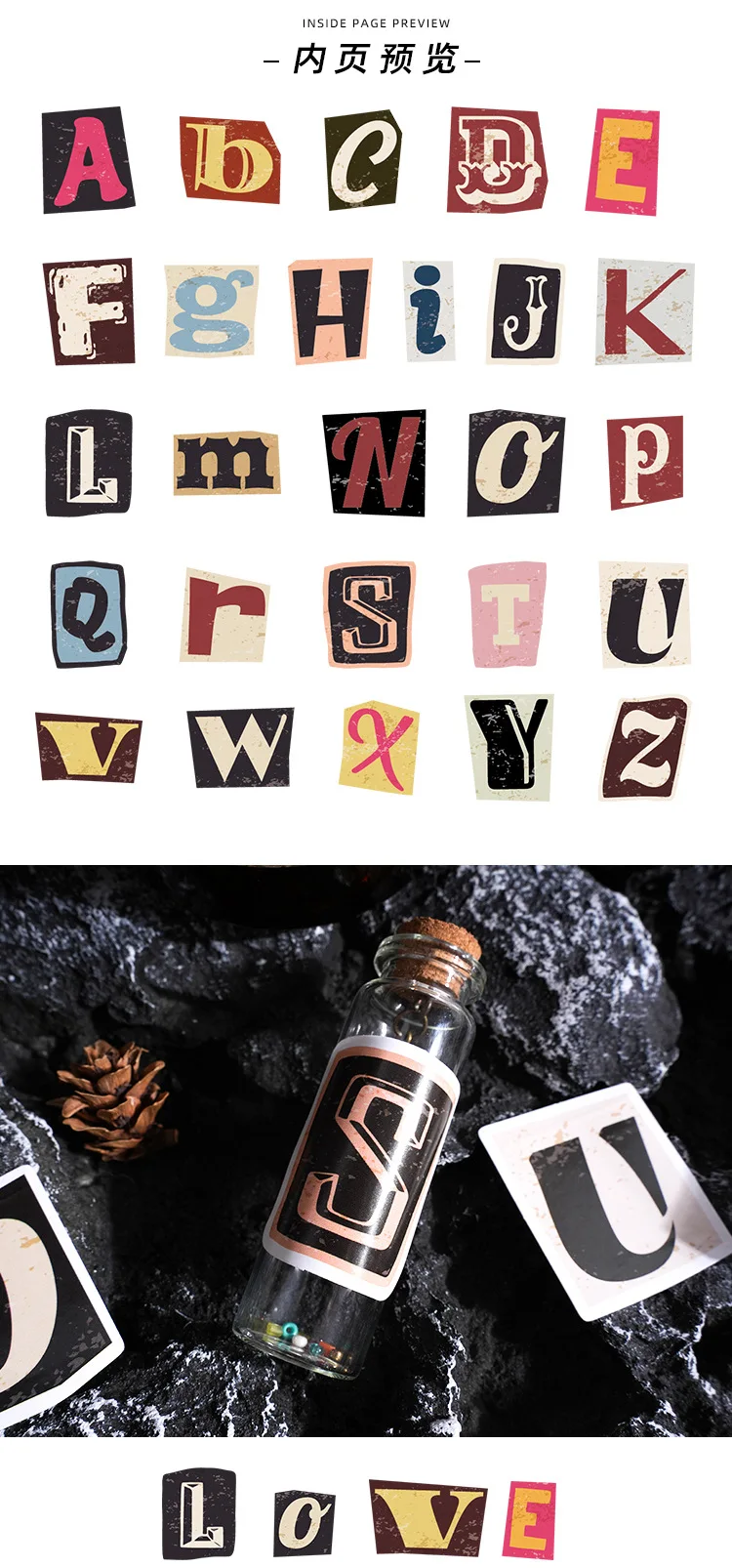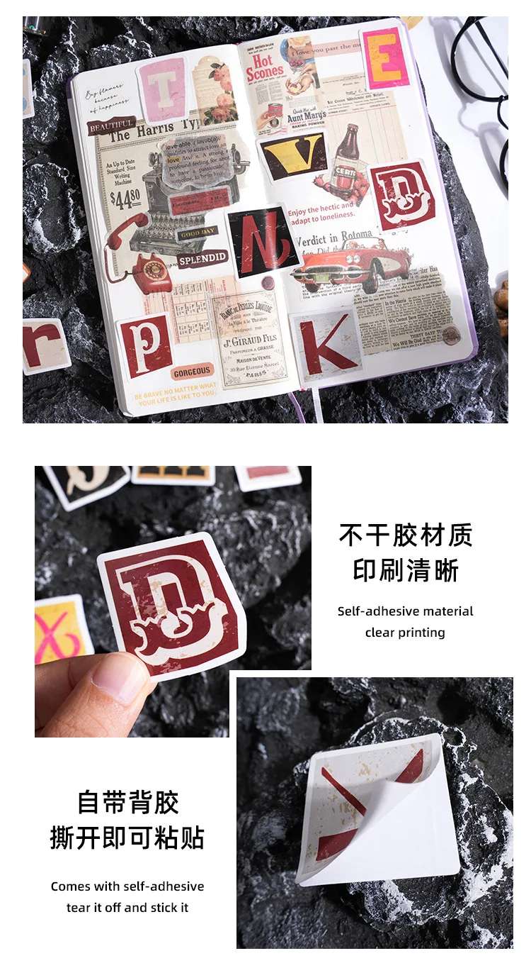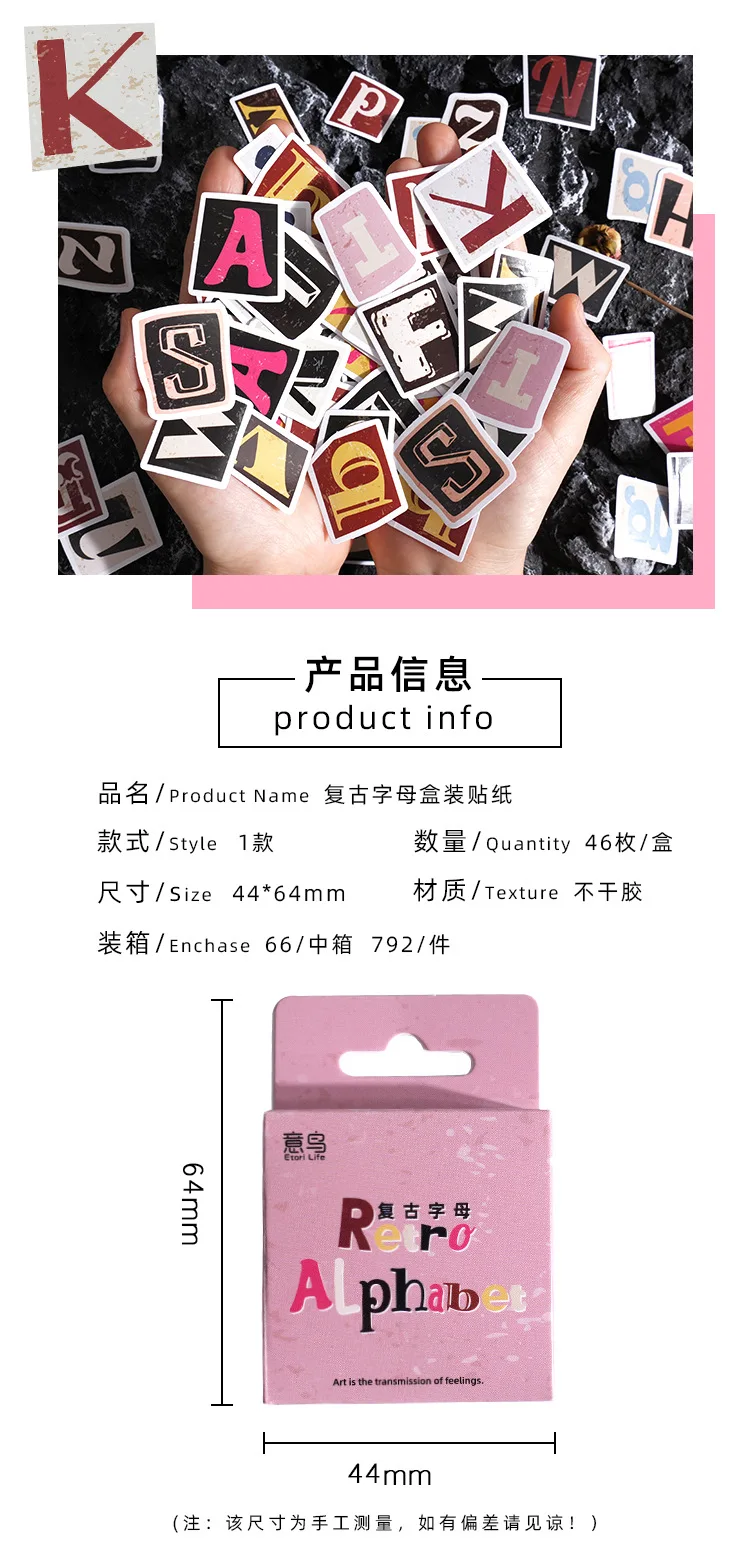 Etori Life Colorful English Letter Sticker 46pcs DIY Decorative Stationery Diary Cup Notebook Mobile Phone Toy Scrapbook