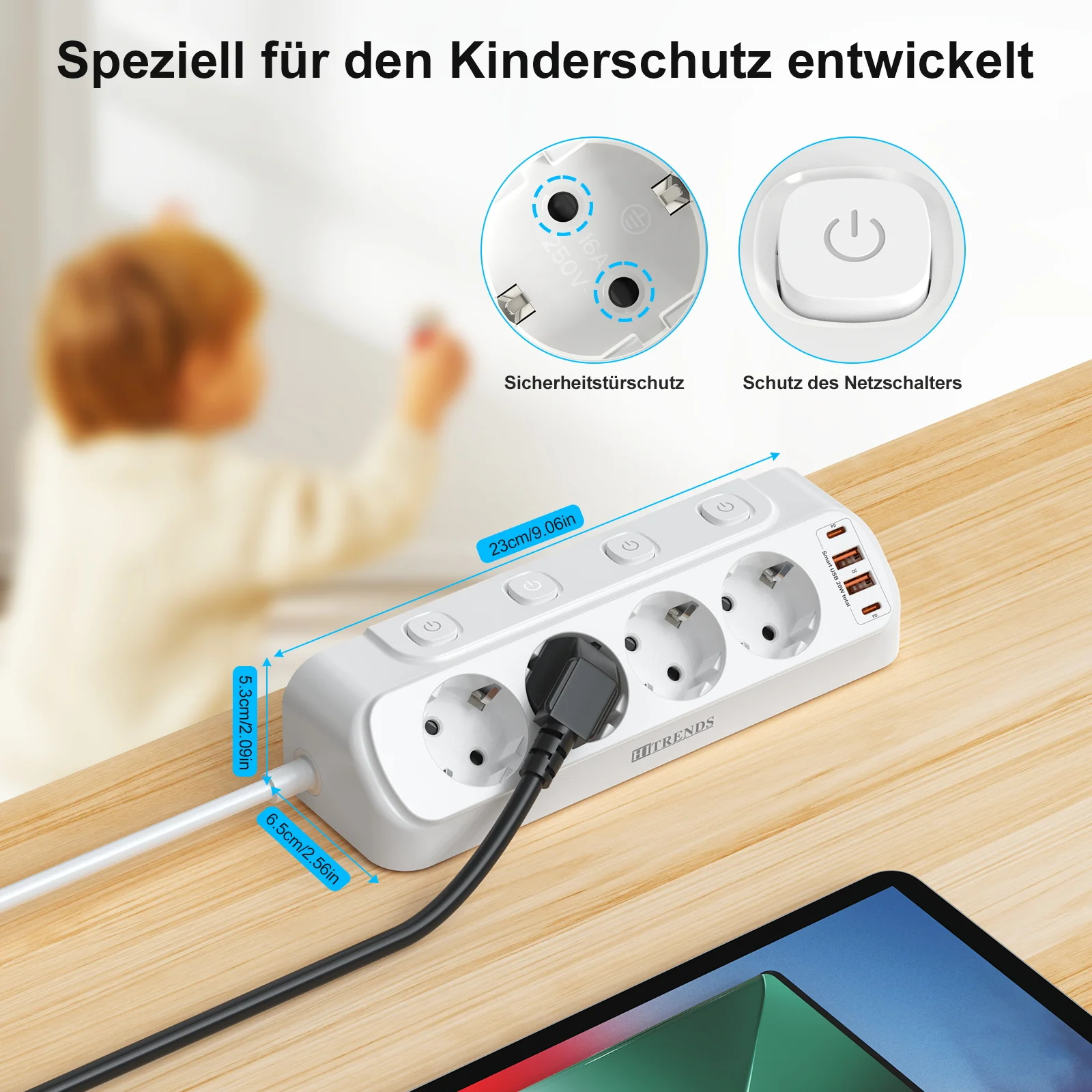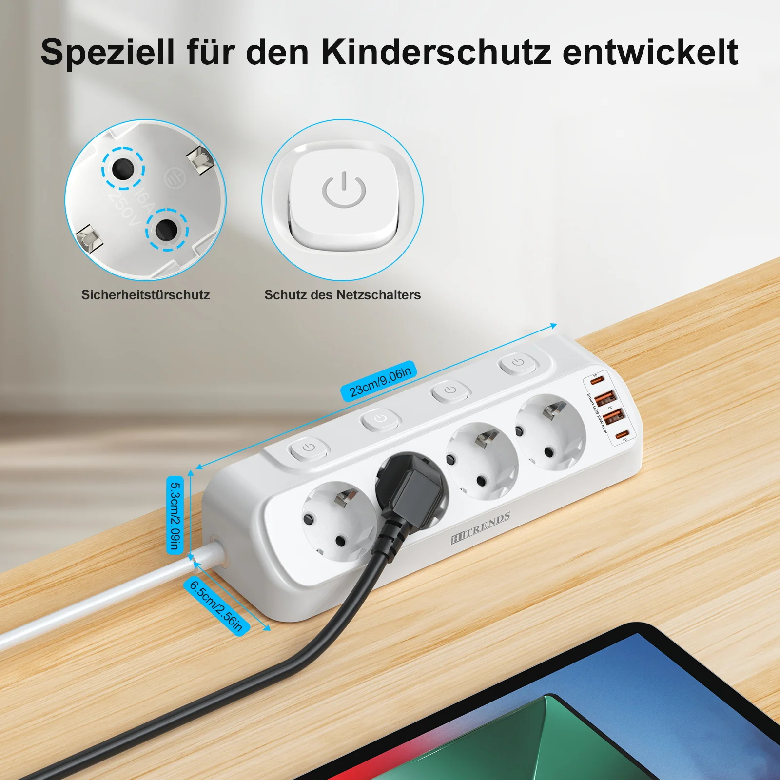 2. Table socket with USB C 20 W: these table sockets with 4 Schuko sockets, 4 USB-C (PD 20 W) 2 USB-A (5 V-2.4 A). Total power 32 W, charge your electronic devices quickly