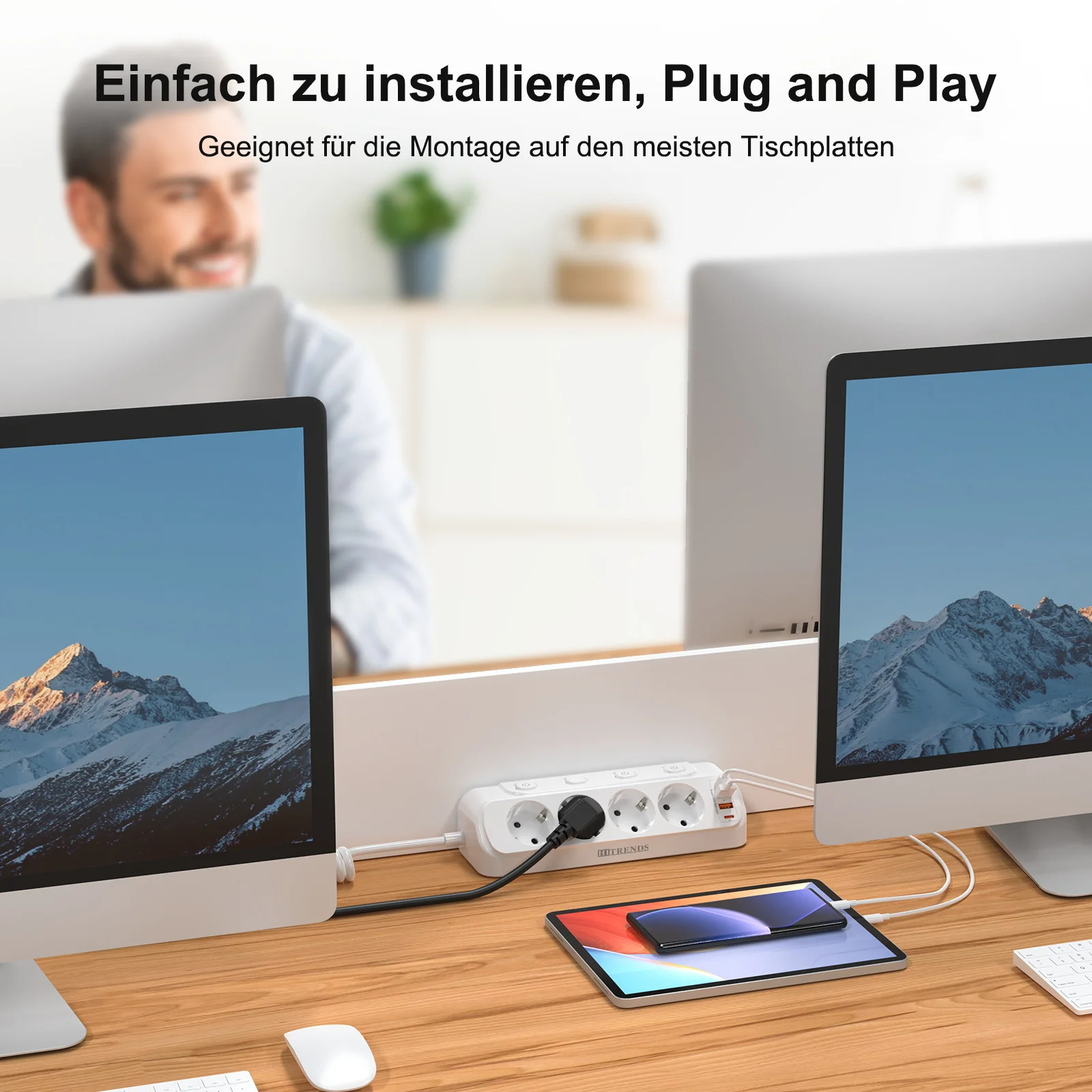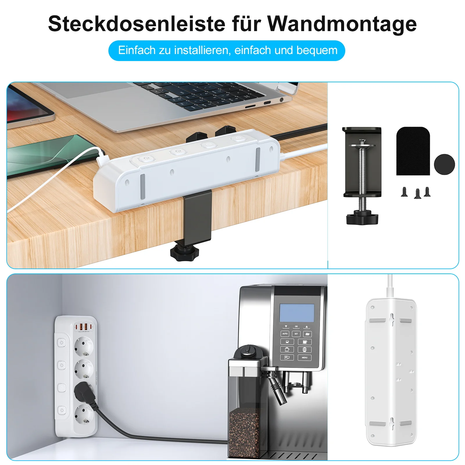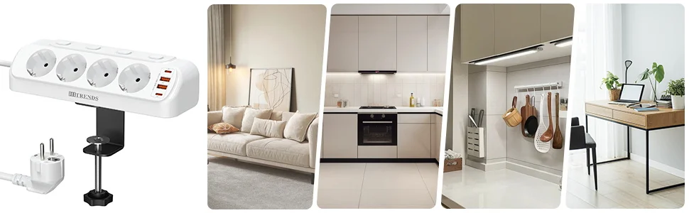 3. USB C desk power strip: High-quality table socket with clamping device. The maximum thickness supported by the desk is 4.5 cm, suitable for installation on most desks