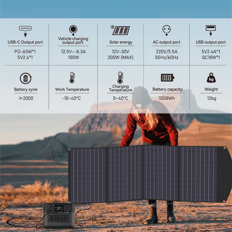 Support MPPT solar charging 300W 4 hours 200W 6.5 hours Power adapter: 200W/20V 6.5 hours