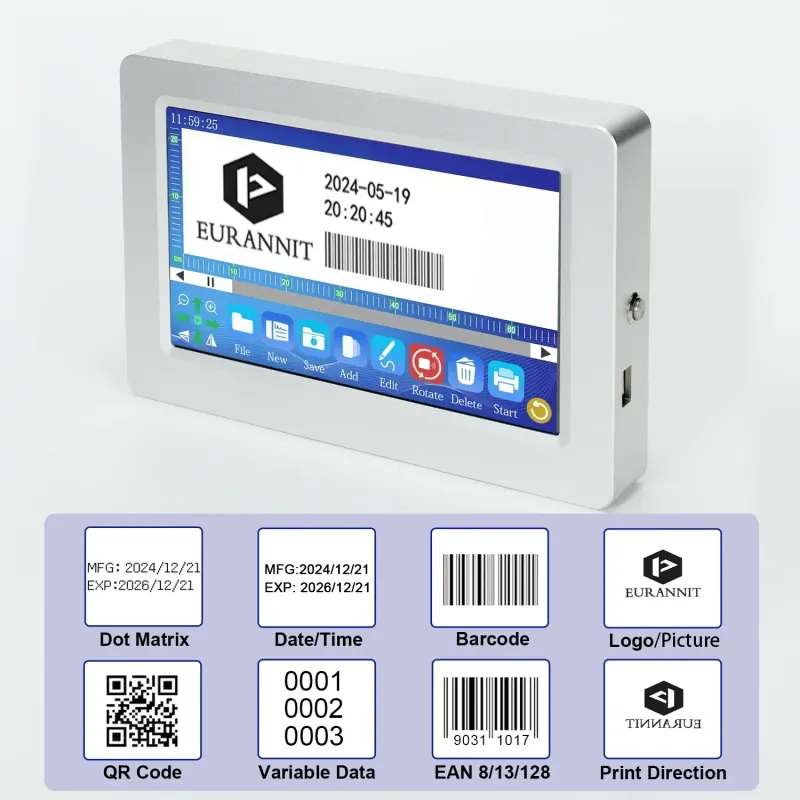 - Diverse Print Content: Time, Date, Counter, QR code, Barcode, Logo, Number, Symbol, Picture, etc.