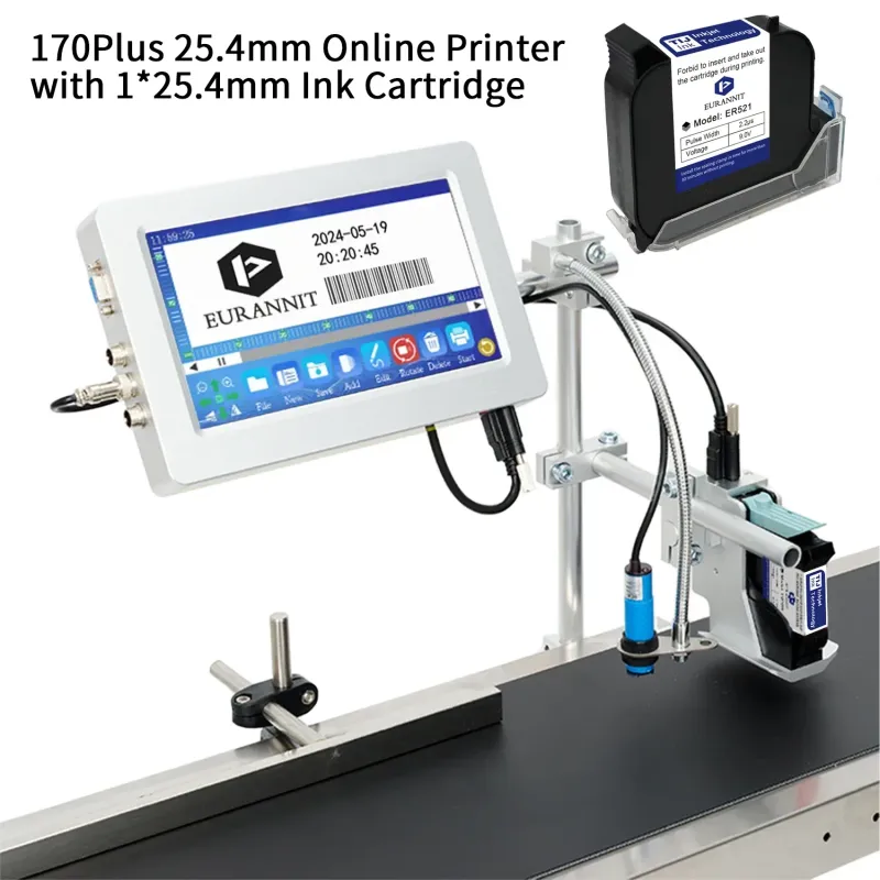 EURANNIT 170Plus 12.7/25.4mm TIJ Industrial Online Thermal Inkjet Printer Text QR Barcode Batch Number Logo Date Online Printer
