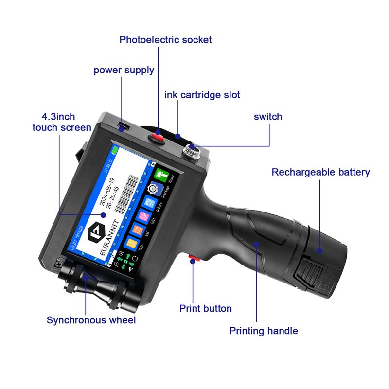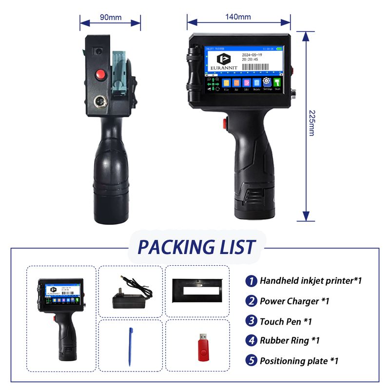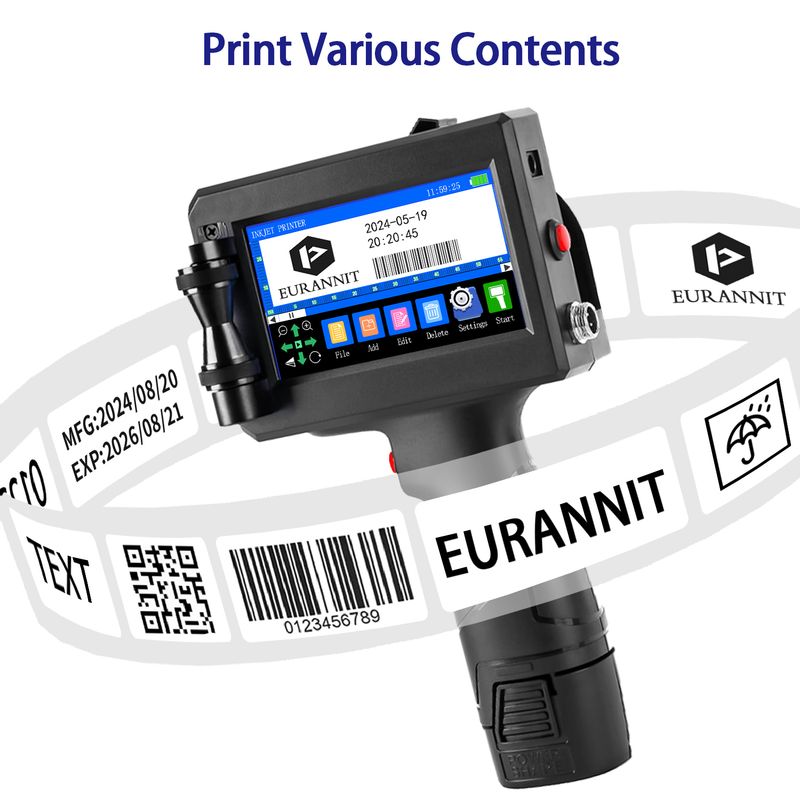 EURANNIT E15 Portable Printer 12.7mm/25.4mm Handheld Inkjet Printer Batch Number Logo Date QR Barcode Image Label Coding Machine