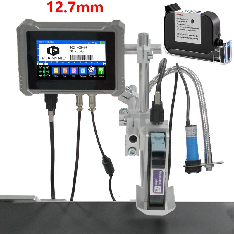 EURANNIT U3-Plus Industrial Online Inkjet Printer 12.7/25.4mm Nozzle Label Printer Text QR Barcode Logo Expire Date TIJ Printer