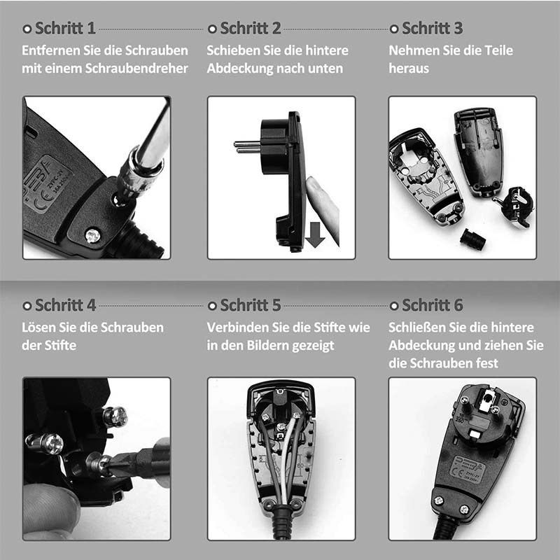 - Steps: First, remove the screws with a screwdriver, slide the back cover down, and take out the components; loosen the screws of the pins, connect the pins as shown in the diagram, close the back cover, and tighten the screws.