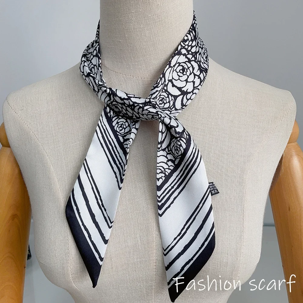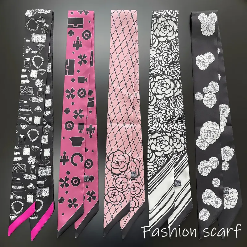 Europe 2025 Fashion New National Style Small Nroken Flower Women's Decorative Twill Binding Bag Handle Silk Scarf Ribbon Scarf